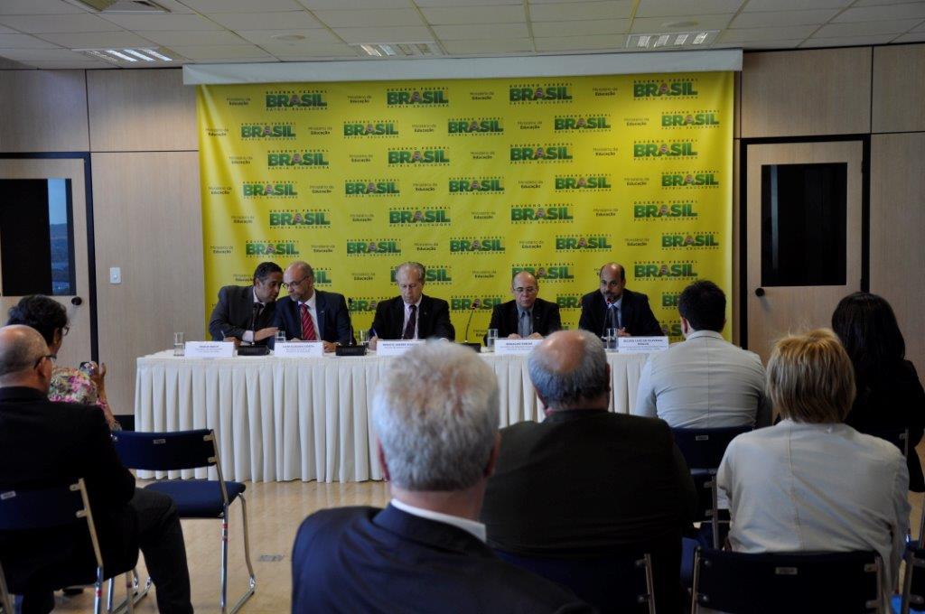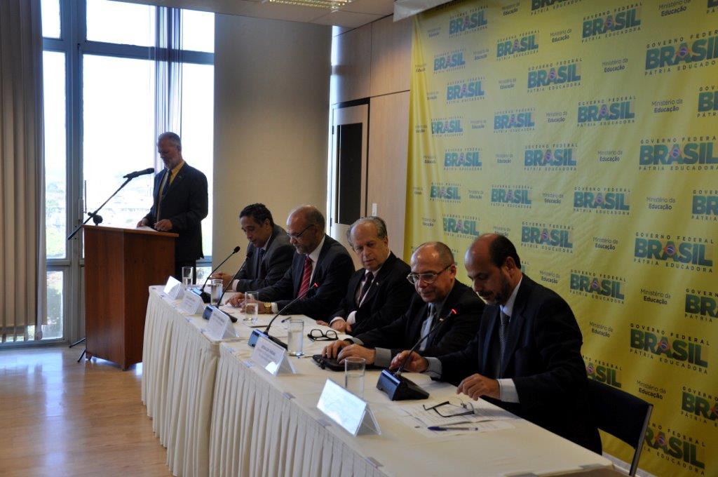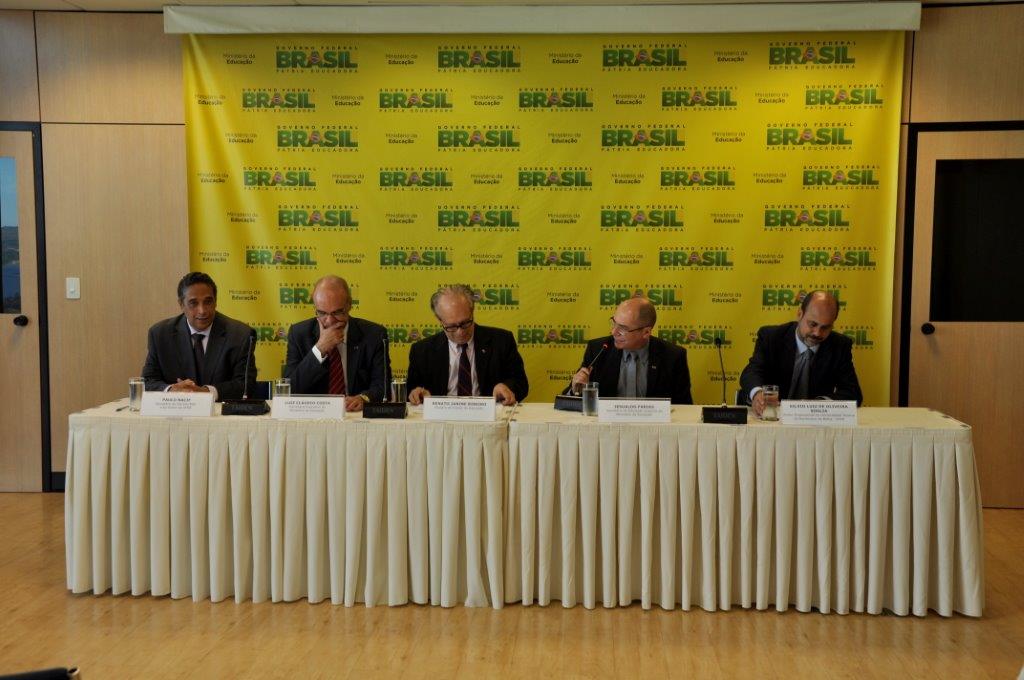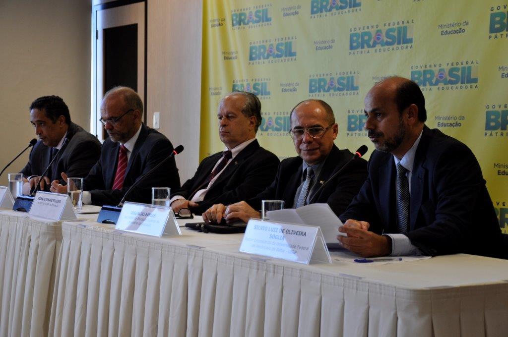 Na mesa da cerimônia de posse estavam presentes o Ministro de Estado da Educação, Renato Janine Ribeiro; o Secretário Executivo do MEC, Luiz Claúdio Costa; o Secretário de Educação Superior do MEC (Sesu), Jesualdo Farias; o Secretário de Educação Continuada, Alfabetização, Diversidade e Inclusão no Ministério da Educação da (SECADI) e ex-reitor da UFRB, Paulo Gabriel Nacif. O atual secretário da SECADI falou da felicidade em estar presente na posse daquele que atuou como vice-reitor nas suas duas gestões de reitorado na UFRB. “Não tenho dúvidas que a Universidade do Recôncavo está em boas mãos”, destacou Nacif. Já Jesualdo Farias da Sesu lembrou os dez anos da UFRB, momento, em sua opinião, propício para celebrar e repensar a instituição e o futuro da Universidade para o nordeste. Ele lembrou ainda a época recente em que o Nordeste “clamava por mais universidades”. Lembrou das seis Universidades Federais criadas na região nos últimos anos, das quais, três na Bahia. “Momento de muita alegria para todos nós, fico na Sesu à disposição para cuidar de todas as questões importantes e que ainda necessitam de empenho coletivo para a consolidação desta que já é uma das principais responsáveis pelo desenvolvimento no estado”, aponta Farias ao falar sobre a UFRB.