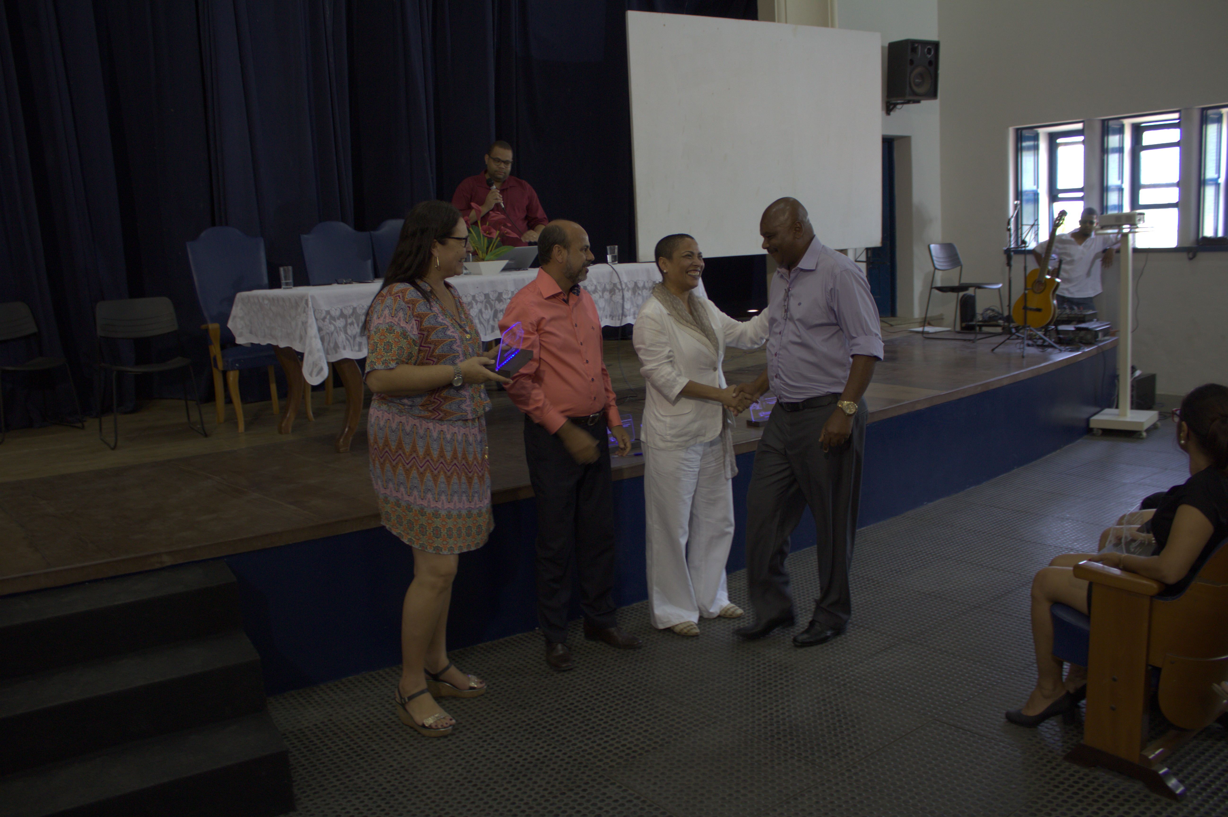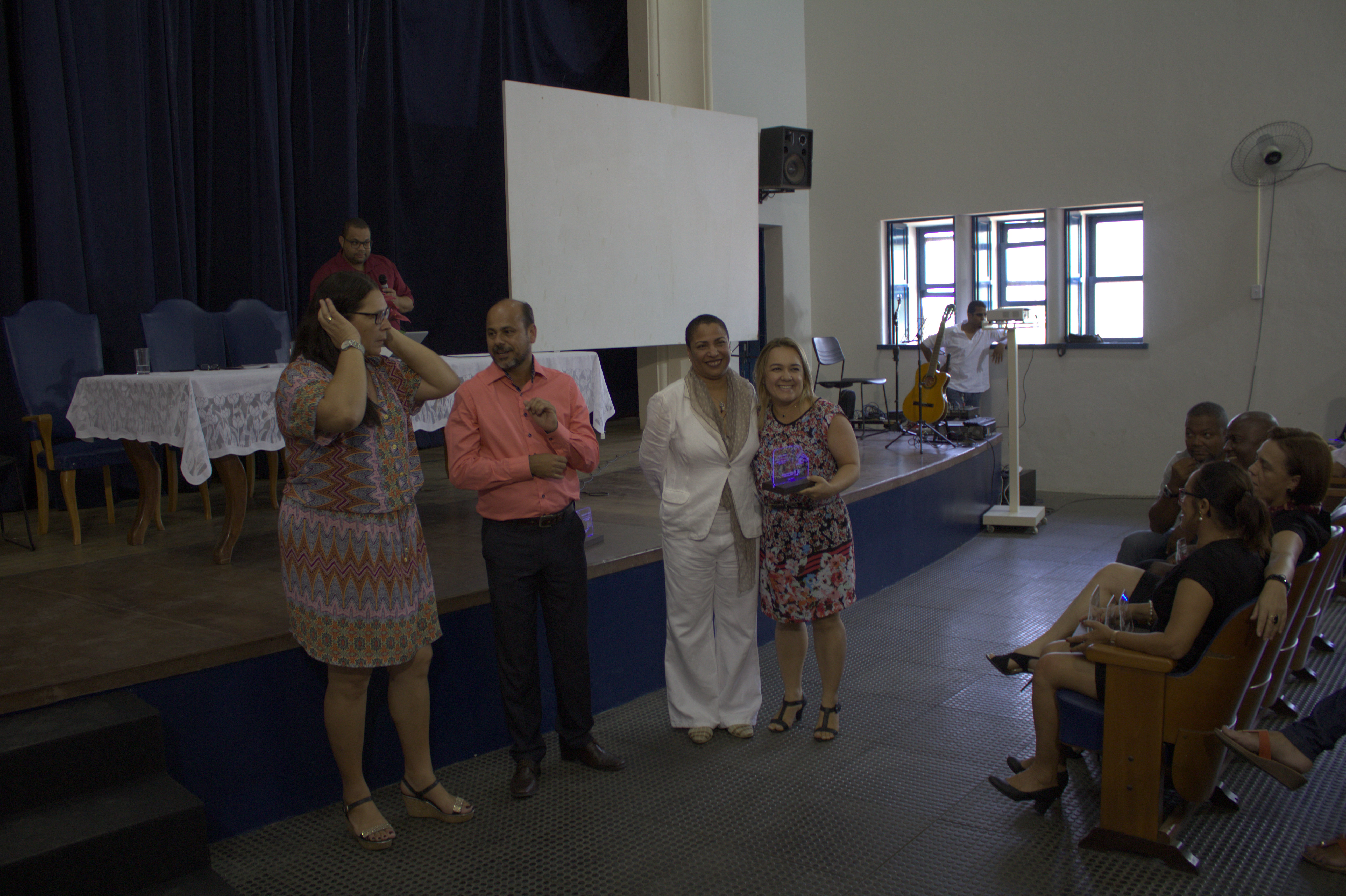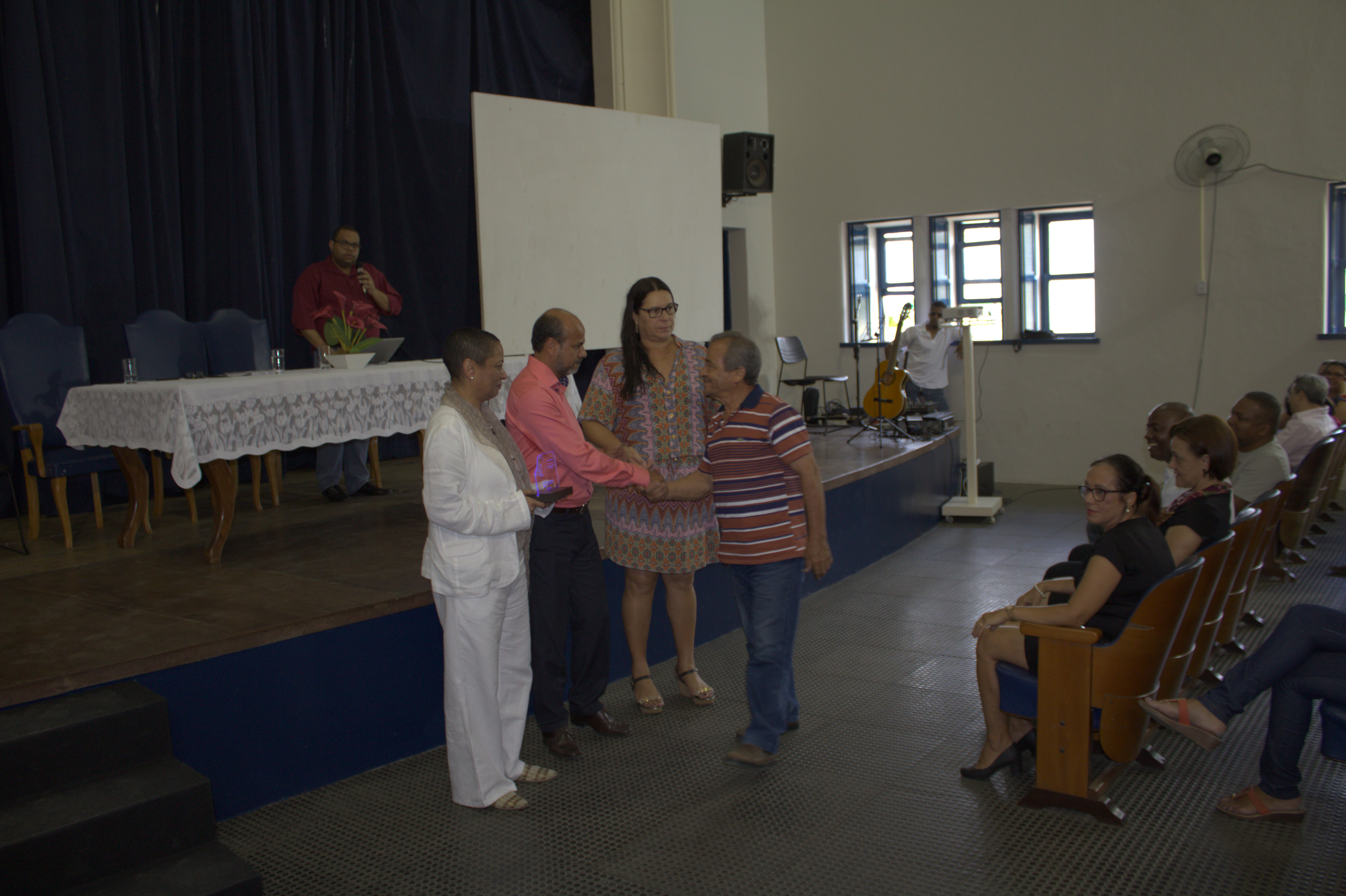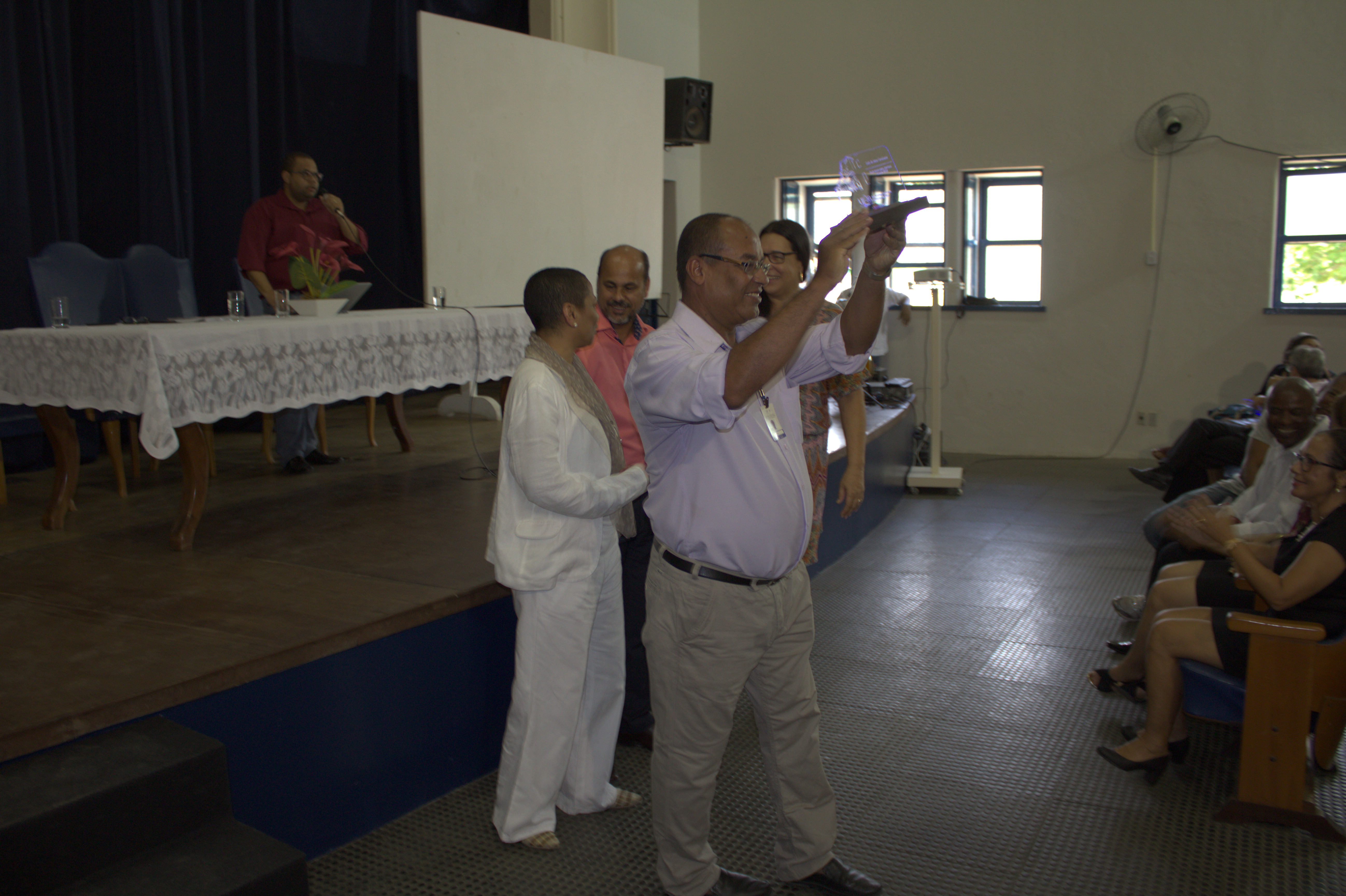 Além do reitor, fizeram parte da mesa de abertura da cerimônia a vice-reitora Georgina Gonçalves, o pró-reitor Wagner Tavares de Gestão de Pessoal (PROGEP) e a representante do sindicato dos servidores técnico-administrativos (Assufba) Aida Maia. O evento contou ainda com apresentação do Coral da UFRB, dos servidores Gustavo Carvalho e Kareen Mendes do CECULT, além dos servidores Gabriel Ferreira, Pedro Barbosa e Victor Aguiar da SIPEF.