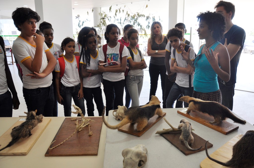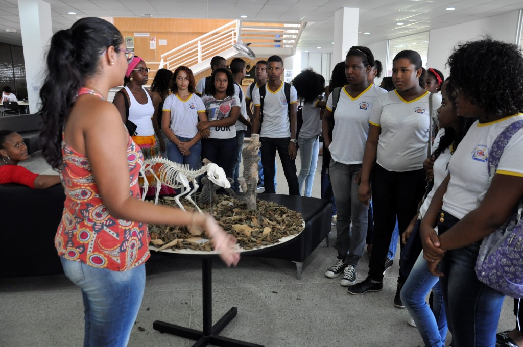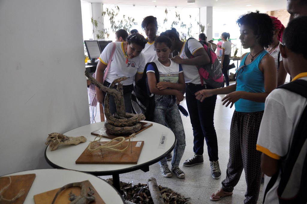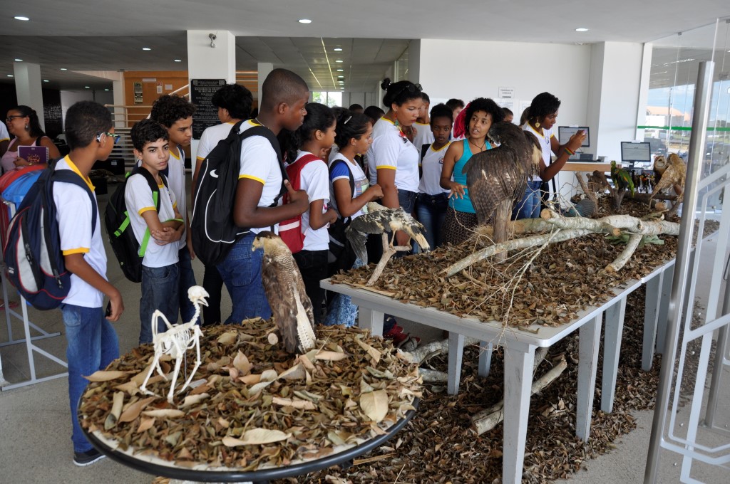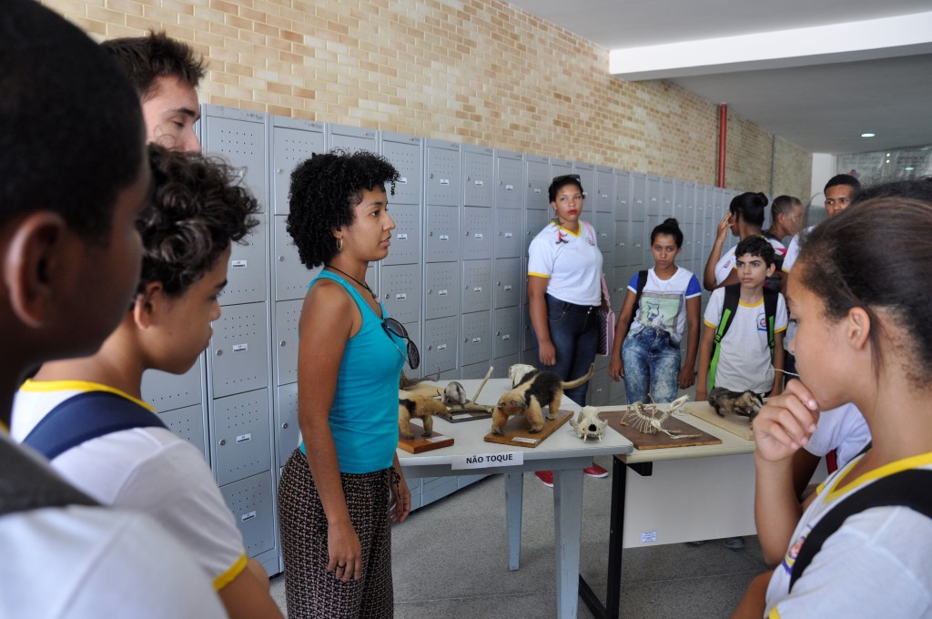 Na quarta-feira, dia 17, a exposição recebeu a visita de alunos do 7º ano do Colégio Municipal Jorge Guerra. A vice-diretora Crislane Vieira e a professora Osdi Ribeiro acompanharam as turmas. “É sempre importante essa parceria firmada entre a instituição de ensino superior com a educação básica, principalmente na nossa cidade, uma vez que os alunos não têm muitas oportunidades de contato com exposições, museus, zoológicos”, diz a professora. “Quando a universidade proporciona esses momentos de irmos a campo, a construção do conhecimento se efetiva de forma mais interessante para os alunos”, afirma.