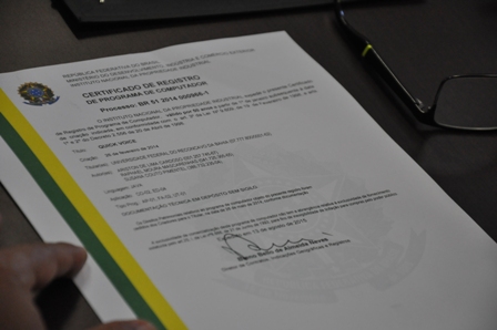 Ao entregar o documento original ao reitor Silvio Sogia, o coordenador da Cinova, Edilson Pontes, destacou que o certificado garante a propriedade da UFRB e proteção do programa desenvolvido pela instituição. Isso significa que o aplicativo Quick Voice foi criado exclusivamente pela Universidade e os seus inventores pertencem a instituição, conforme a Lei 9.609/98, que rege a proteção dos programas de computador.