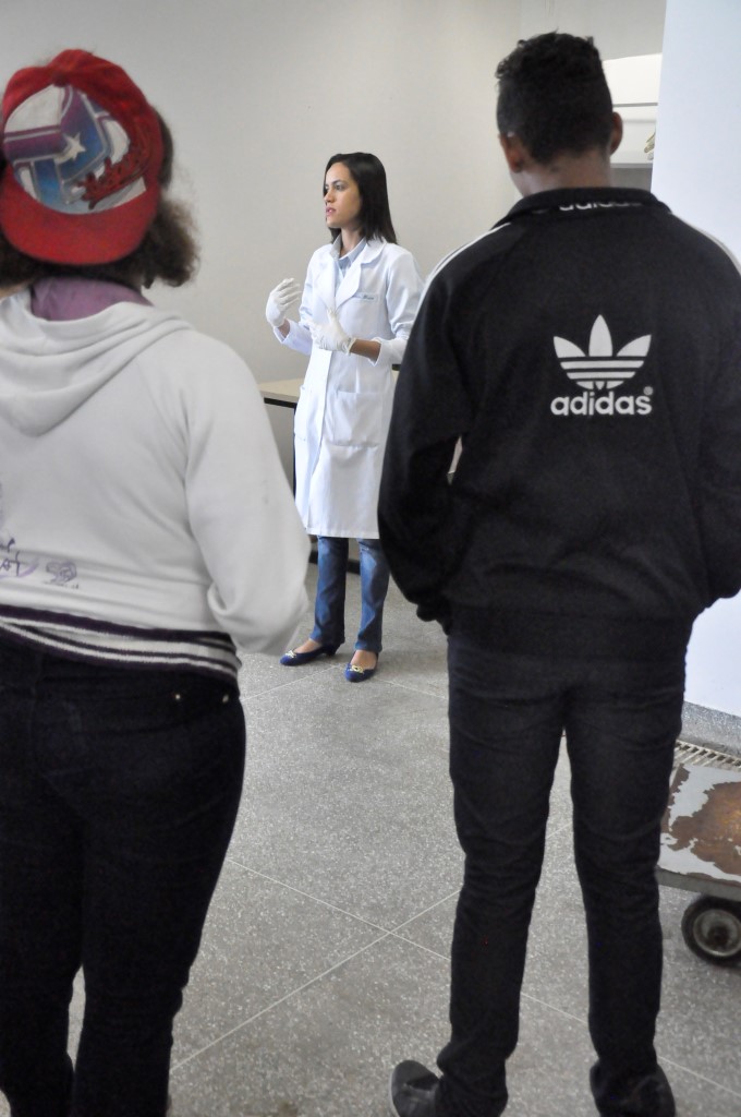A visita foi encerrada no Hospital Universitário de Medicina Veterinária. Recepcionados pela assistente social Andressa Hosana de Oliveira e a técnica em Anatomia Márcia Rejane de Oliveira, o grupo conheceu os consultórios médicos, o centro cirúrgico, o laboratório patologia veterinária, a sala de necropsia, a clínica de pequenos animais e a clínica de grandes animais.