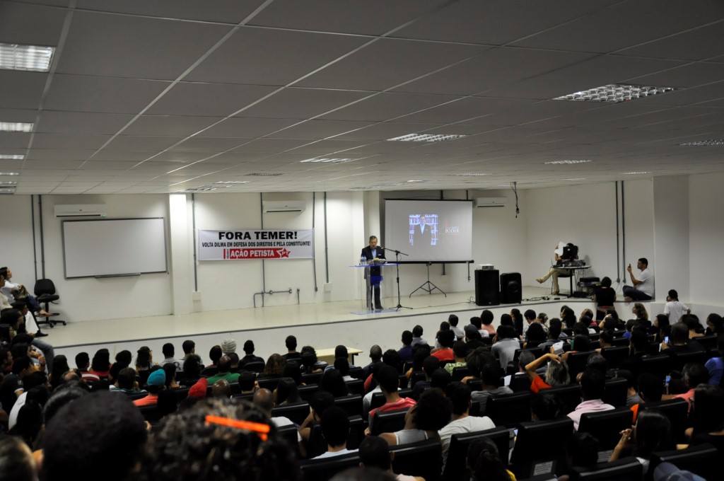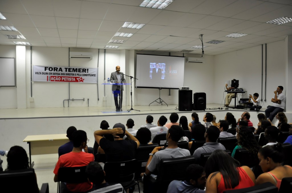 Além de falar sobre a conjuntura política nacional, o palestrante abordou o papel da mídia na história recente do Brasil. “Eu vim aqui falar sobre a questão do poder na democracia brasileira e vou aproveitar para recapitular alguns capítulos da nossa trajetória que acabei de publicar no livro. E fazer isso é de é uma responsabilidade muito grande, pois nesse estratagema político nacional o poder na imprensa no Brasil é na verdade o primeiro poder”, comentou.