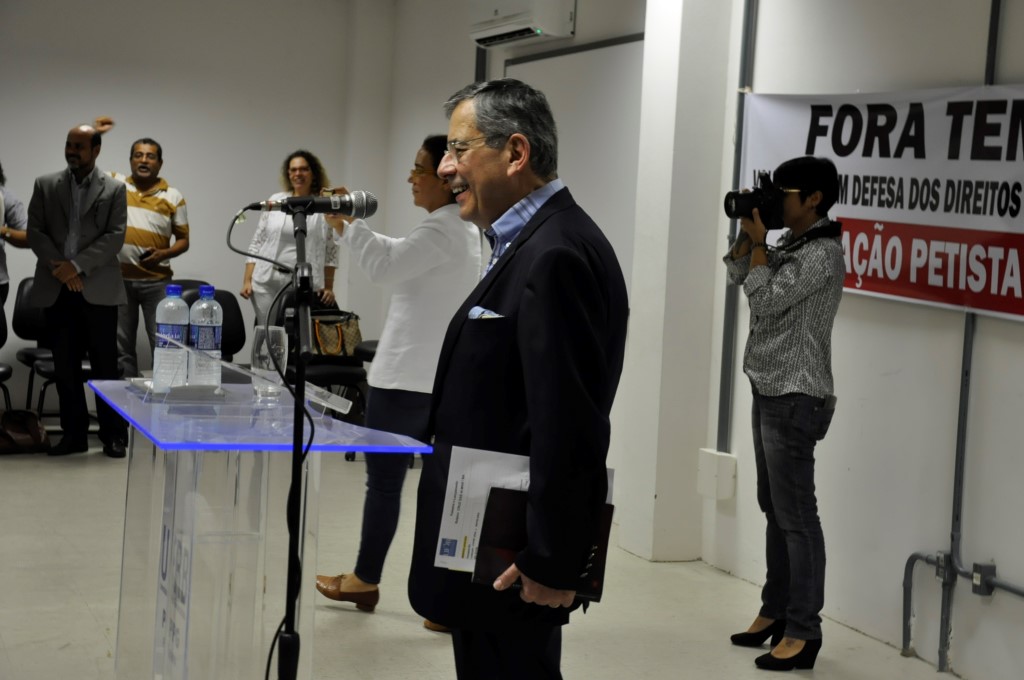 O reitor da UFRB, Silvio Soglia, deu boas vindas ao convidado do Ciclo de Debates e destacou a necessidade de debater os temas do cenário político. “Vivenciamos hoje no Brasil uma tentativa de tirar da universidade a sua formação cidadã e isso não condiz com a nossa história e com aquilo que acreditamos ser o papel da nossa instituição na formação do nosso povo. Quero registrar nossa alegria e desde já agradecer profundamente a você Paulo, por ter aceitado o convite da nossa universidade. Certamente hoje será um dia histórico para nossa instituição e vamos ouvi-lo com muita atenção”, disse o reitor.