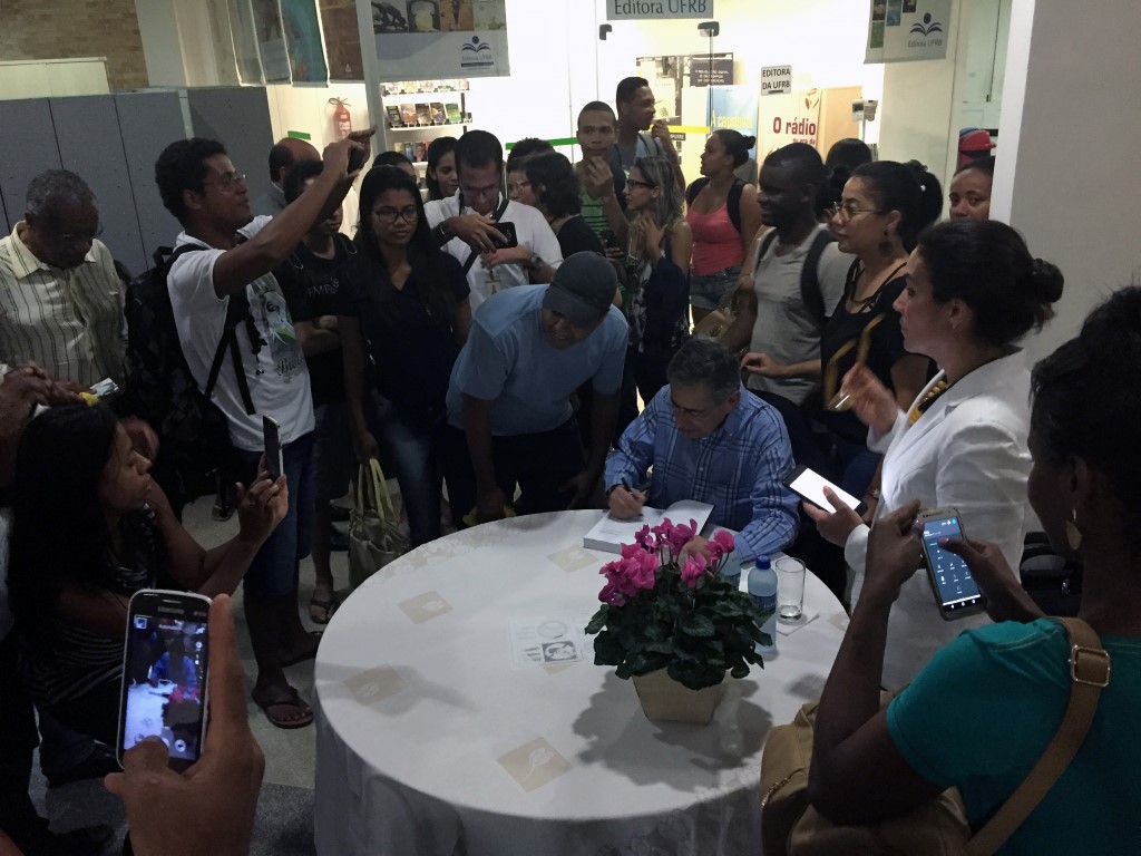 O jornalista atendeu a imprensa local no espaço da Editora da UFRB e após o término do evento participou de uma intensa agenda de autógrafos do seu recém-lançado livro “O Quarto Poder: Uma outra história”.
