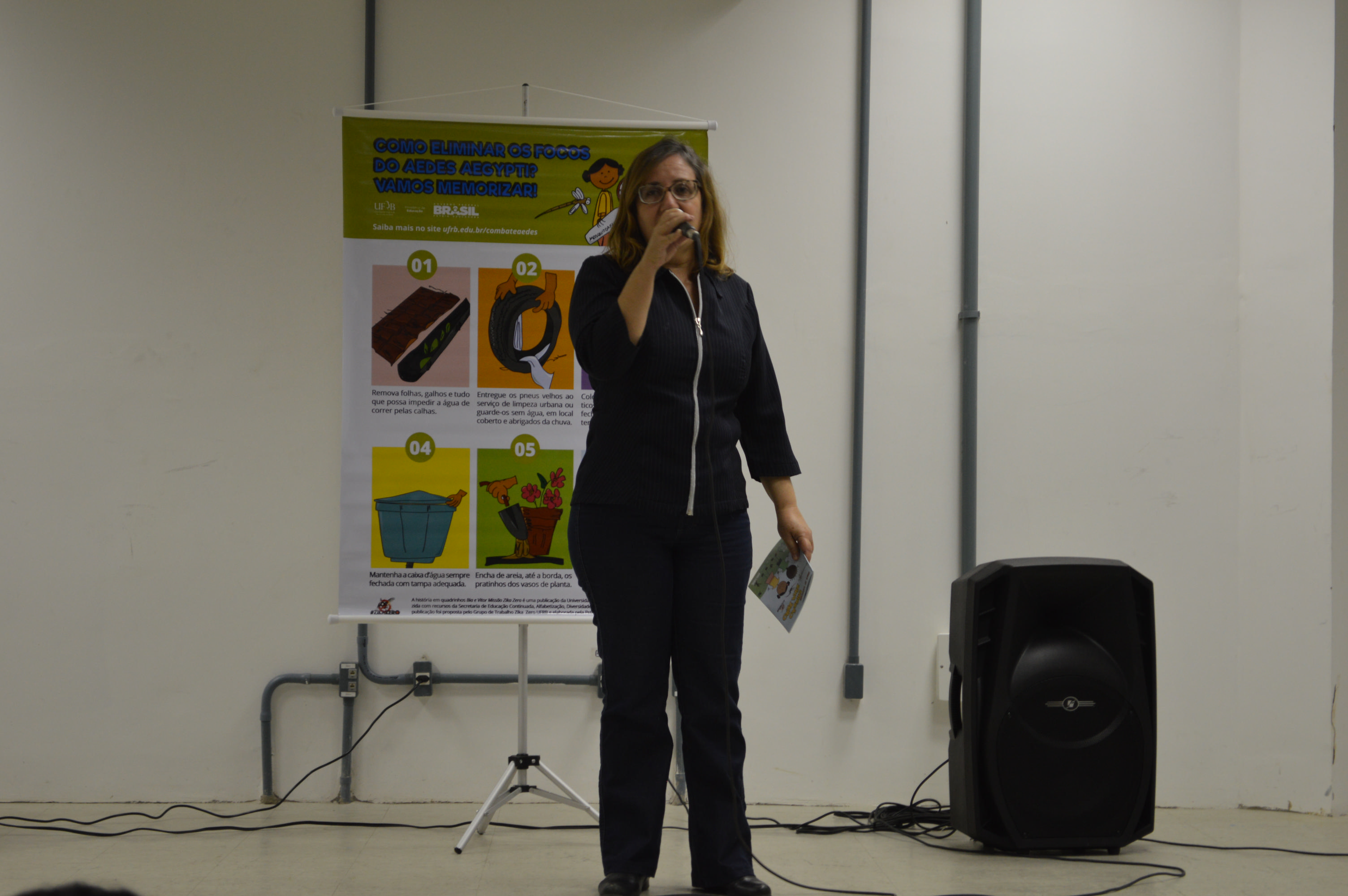 Já a professora Silvia Arantes, coordenadora do grupo de trabalho da UFRB contra o Aedes aegypti, abordou o histórico das doenças transmitidas pelo mosquito e suas conseqüências: a Dengue, a Febre Chikungunya e o Vírus Zika. Explicou ainda a criação do grupo de trabalho (Portaria Nº 146/2016, com base no Decreto Presidencial Nº 8.662/2016), que possui representantes de todos os campi da UFRB.
