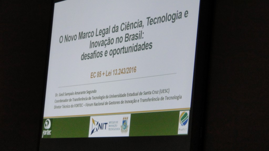 A Coordenação de Criação e Inovação da UFRB (CINOVA), representada por Edilson Pires, e o pró-reitor de Planejamento (PROPLAN), José Mascarenhas, apresentaram o palestrante e realizaram a abertura do evento. “Para nós é motivo de muita honra contar com a presença do professor Gesil que é um dos maiores nomes que discute inovação e tecnologia no país. Ele participou ativamente desse processo do marco regulatório, e por conhecer toda a história dessa discussão, poderá contribuir muito com esse debate em nossa instituição. Consideramos que foi um importante passo reunir no dia de hoje professores, alunos e técnicos da universidade para juntos responder ao desafio de implementar uma política de inovação que atenda esse novo marco legal”, disse Edilson Pires.