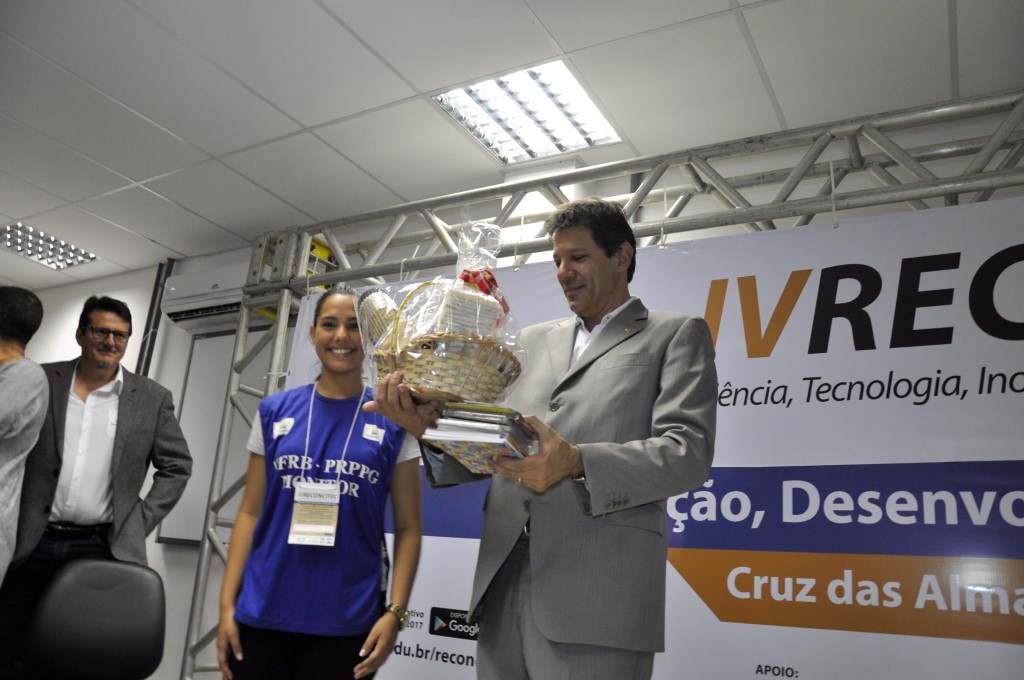 O conferencista convidado foi o acadêmico Fernando Haddad, ex-ministro da Educação (2005-2012) e ex-prefeito de São Paulo (2013-2016). Haddad abordou o tema “Educação, Desenvolvimento e Integração Social” e apresentou um panorama da expansão do Ensino Superior no Brasil, destacando os impactos econômicos e sociais da instalação de instituições de ensino para as comunidades locais. De acordo com Haddad, após uma década de sua última visita ao município, é visível a transformação de Cruz das Almas e do Recôncavo com a consolidação da UFRB. “O significado desta Universidade é para nós um motivo de celebração, mas o momento que nós estamos vivendo hoje, especialmente na educação, exige ação e recuperação de uma agenda que pode ser perdida. Por isso nós precisamos continuar a investir em educação para ter muitas Cruz das Almas espalhadas pelo Brasil. Essa Universidade talvez seja a maior instituição da primeira geração da expansão universitária, Já superando a marca de 10 mil estudantes em pleno Recôncavo baiano, aquele onde 86% da população é negra. Então se nós não tivermos a consciência do que podemos merecer, não seremos dignos de conquistar mais nada”, analisa Haddad.
