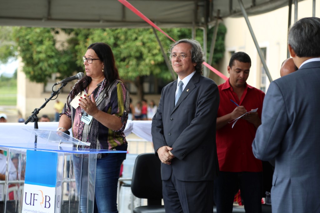 A representante do sindicato dos servidores técnico-administrativos na UFRB (Assufba) Aida Maia fez a abertura do Ato. “A tentativa de interferir na autonomia universitária não pode quebrar o ímpeto da comunidade acadêmica em realizar as ações da universidade”, comentou.