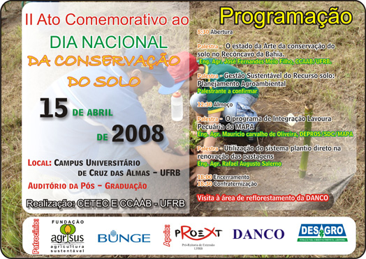 No dia 15 de abril de 2008, os Centros de Ciências Exatas e Tecnológicas (CETEC) e Ciências Agrárias, Biológicas e Ambientais (CCAAB) da Universidade Federal do Recôncavo da Bahia (UFRB), promoveram o "II ATO COMEMORATIVO PELO DIA NACIONAL DE CONSERVAÇÃO DO SOLO".