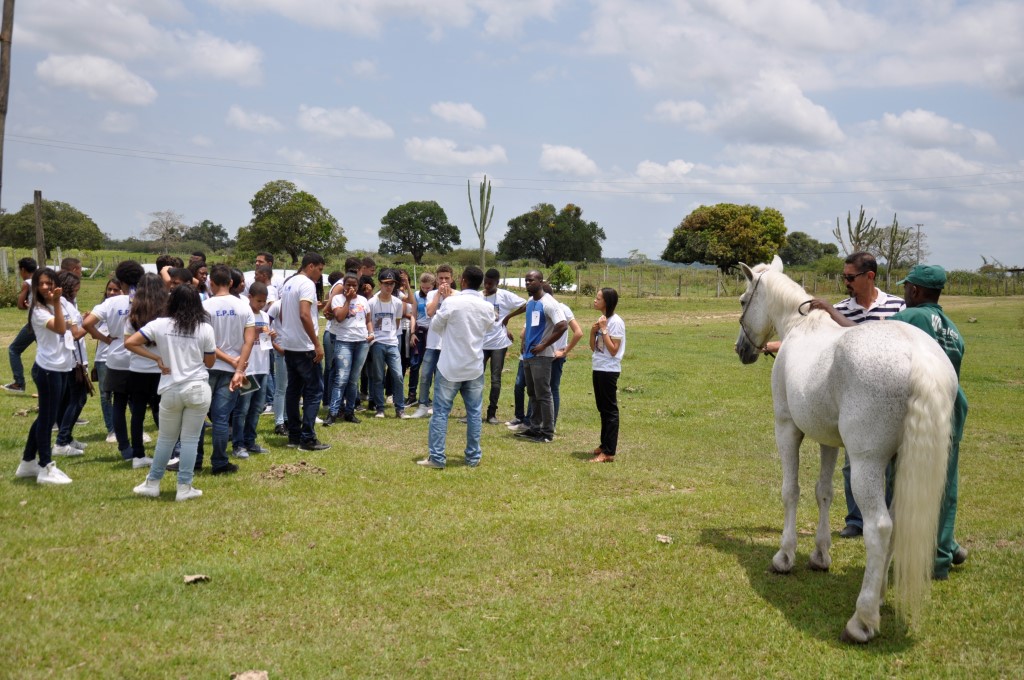 Luiz Edmundo Sobrinho, chefe do Núcleo de Experimentação e Produção Animal, acompanhou os alunos e professores em visita a Fazenda Experimental, vinculada ao Centro de Ciências Agrárias, Ambientais e Biológicas. Edmundo explicou o processo de criação, por confinamento, de aves, coelhos, caprinos, eqüinos e bovinos.