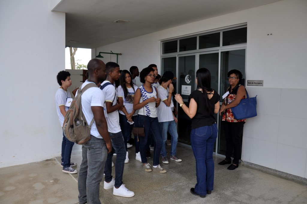 A chefe do Núcleo de Relações Públicas da UFRB, Karina de Souza Silva, contou a história de formação da UFRB e apresentou ao grupo laboratórios, estrutura administrativa – Pró-Reitorias localizadas fora do prédio da Reitoria – e o Hospital Universitário de Medicina Veterinária (HUMV), onde eles puderam conhecer pesquisas e procedimentos realizados nestes locais.