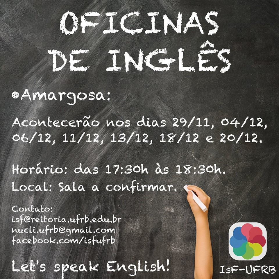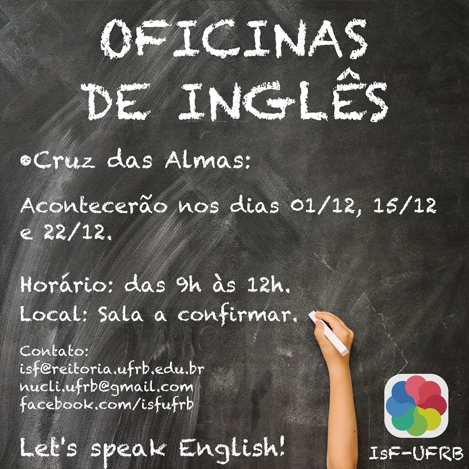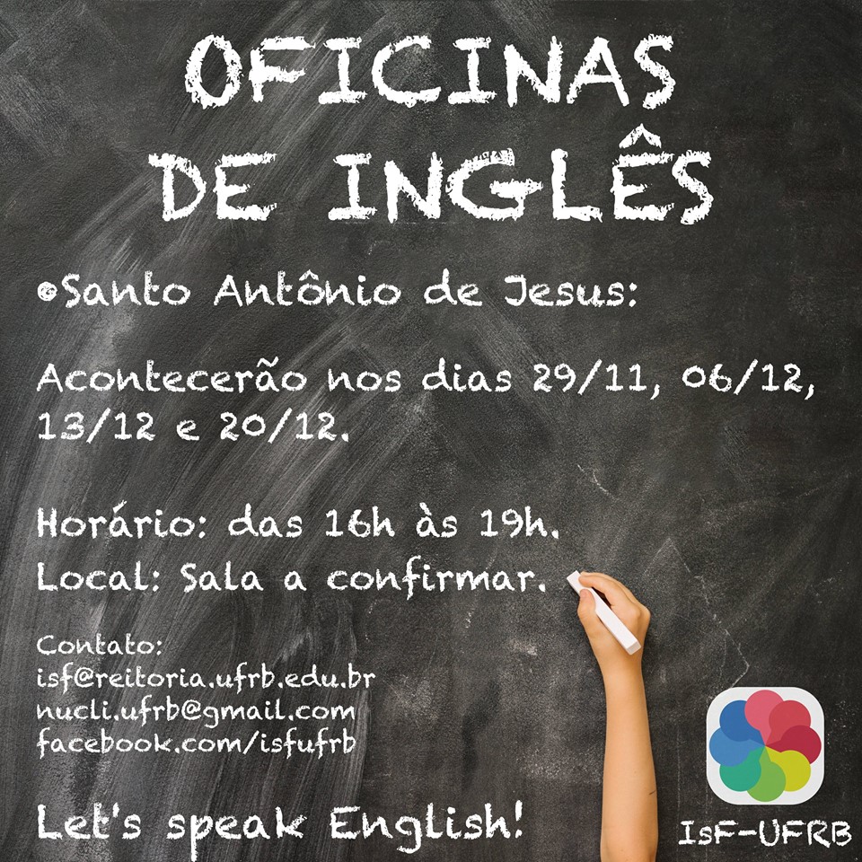 A Universidade Federal do Recôncavo da Bahia (UFRB), por meio do Programa Idiomas sem Fronteiras (IsF), inicia nesta quarta-feira, dia 29, oficinas em língua inglesa nos Campi de Amargosa, Cruz das Almas, Feira de Santana, Santo Amaro e Santo Antônio de Jesus.Não é necessária inscrição prévia para participar das oficinas.