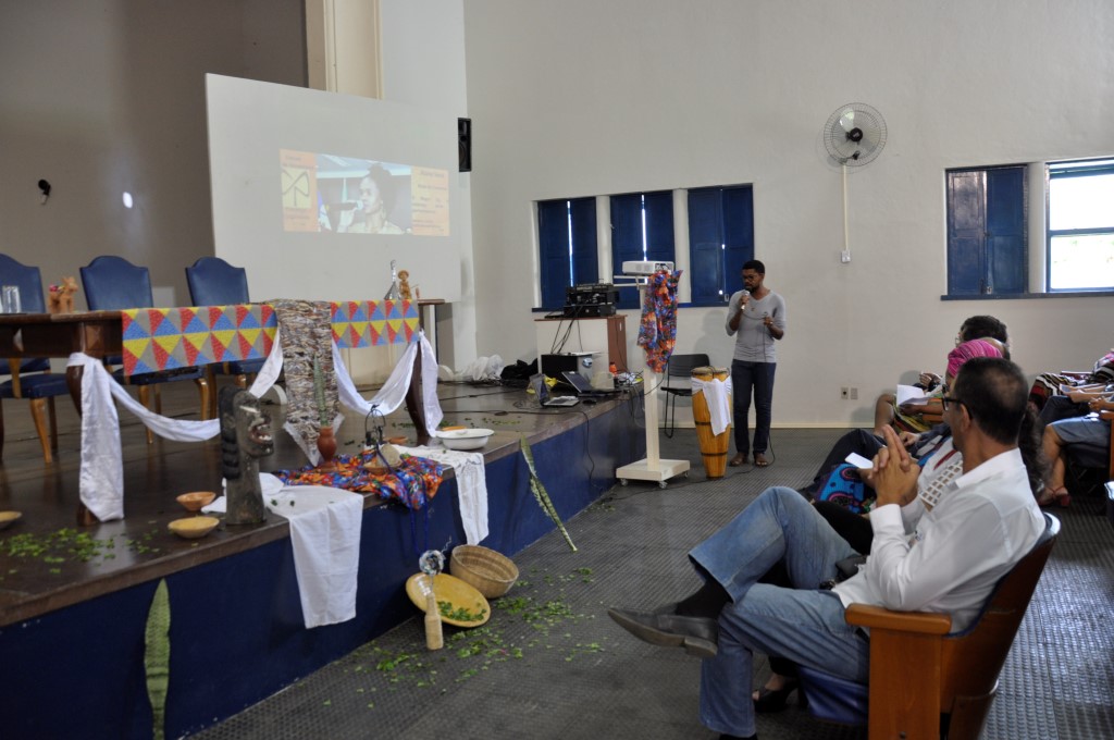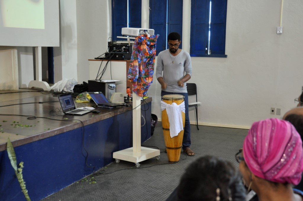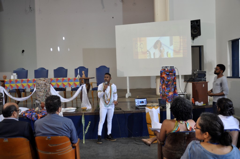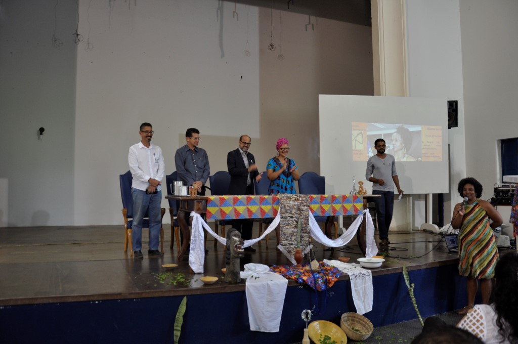 Com uma apresentação do poema “Salve as Folhas”, de Mário de Andrade, musicado por Maria Bethânia, o estudante de Agronomia da UFRB, Roberto Neto, e o ex-estagiário da UFRB e hoje licenciado em Pedagogia pela Faculdade Maria Milza (FAMAM), Jean Costa, saudaram os presentes e desejaram bom evento a todos. “Cosi euê. Cosi orixá. Euê ô. Euê ô orixá”, entoaram em yourubá.