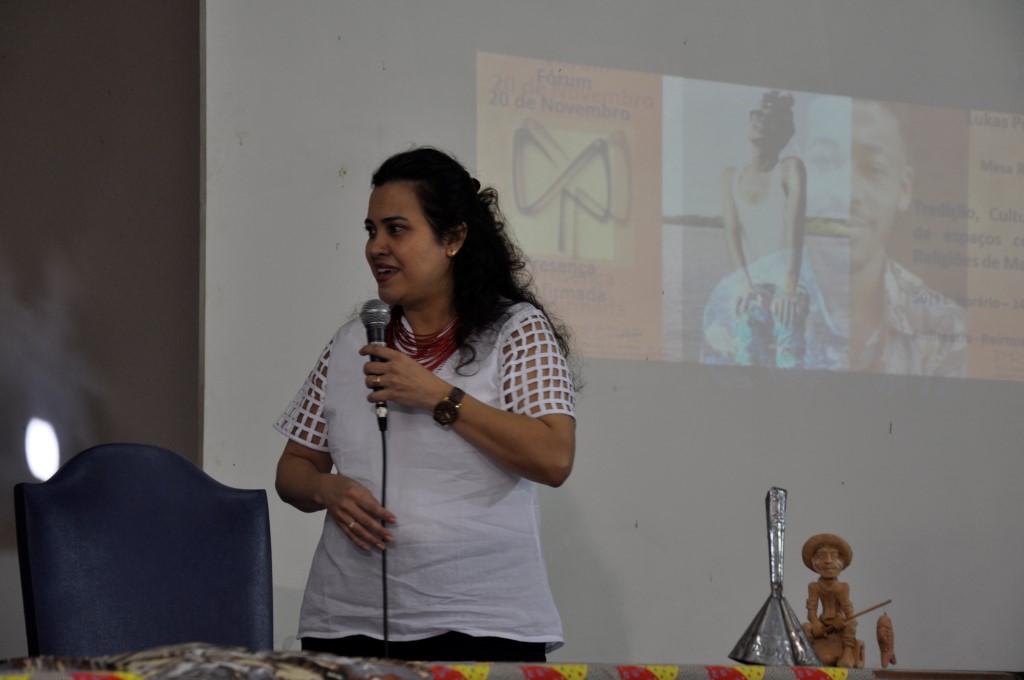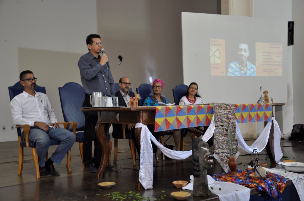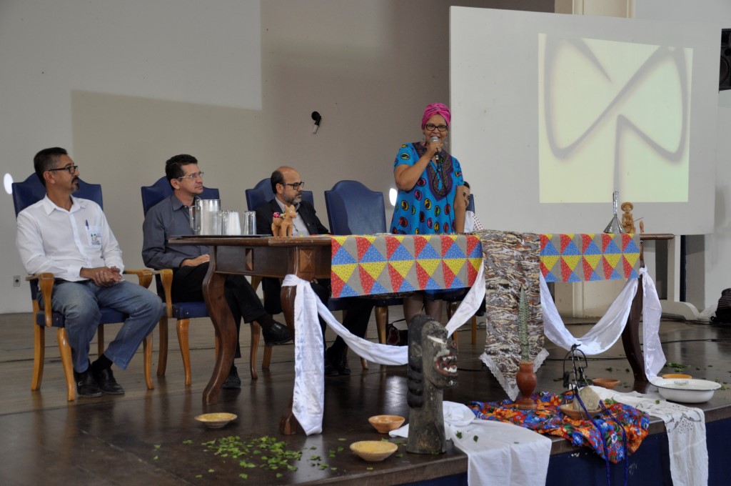A pró-reitora da PROPAAE, Maria Goretti, saudou os convidados e parabenizou sua equipe pela organização do evento. “Esse é o momento de pensarmos em políticas afirmativas para apoiar a permanência de nossos estudantes”, disse. “É o momento de refletir, discutir, fomentar e reafirmar a nossa posição enquanto UFRB, enquanto universidade negra e que precisa, portanto, ter uma política afrocentrada, uma política voltada para os negros”, acrescentou.