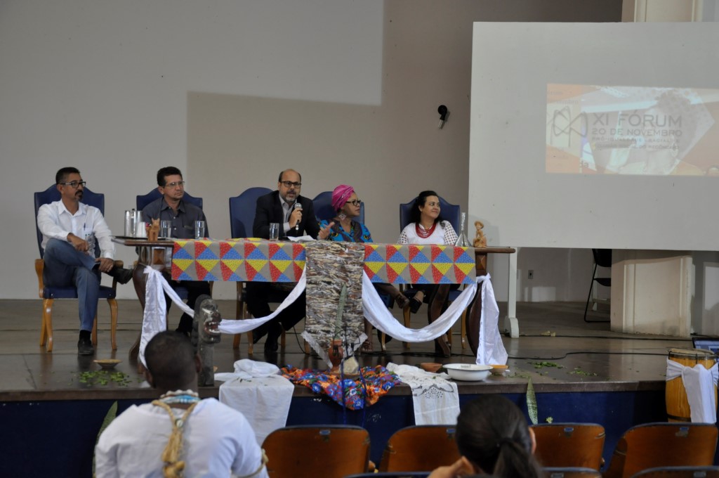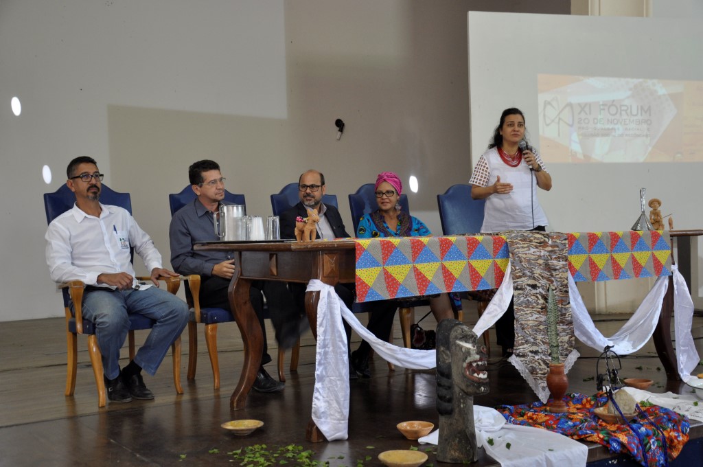 “As políticas afirmativas, em todas as suas dimensões, são políticas fundantes dessa Universidade. Fomos os primeiros a criar uma pró-reitoria nessa área e não podia ser diferente, porque nós construímos uma Universidade com feições populares. Somos frutos de uma luta popular, que, no Recôncavo, é uma luta do povo negro”, disse o reitor Silvio Soglia em seu discurso. Ele definiu o fórum como “um espaço de celebração de nossas raízes e ancestralidades”.