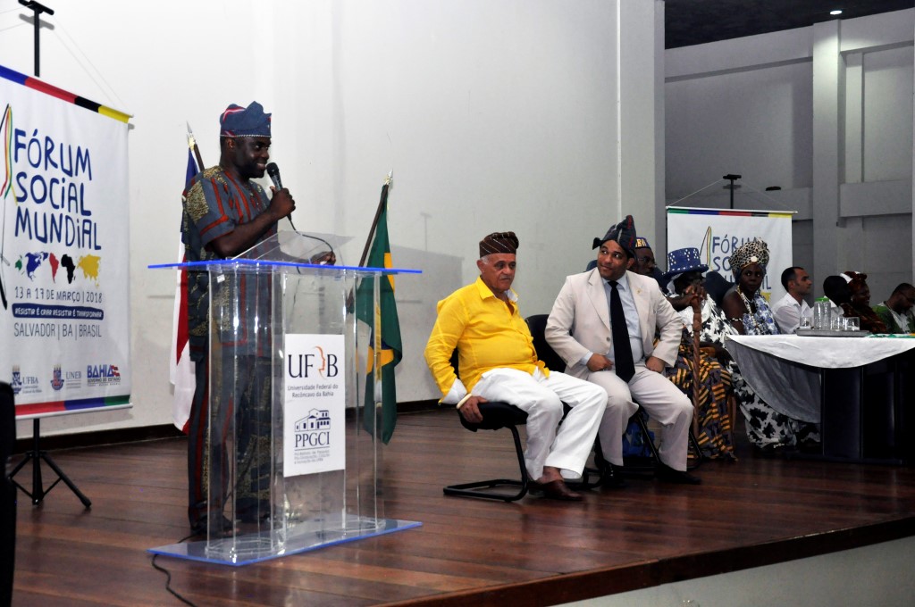 Abrindo a cerimônia, o Doté Marcelino Gomes, da casa de Adorno de Cachoeira, fez uma saudação inicial. Em seguida, os representantes do Comitê Facilitador do Fórum, Tatá Edson e Ekedi Marina, deram as boas-vindas aos presentes. Marina ressaltou a importância do momento histórico e clamou a todos para a tarefa de construir a unidade dos povos africanos no mundo. “Cá estamos nós a ver o quanto a nossa identidade religiosa e cultural está representada. É responsabilidade de todos esse processo de transformação. Estamos todos na busca da resistência e sobrevivência”, disse.