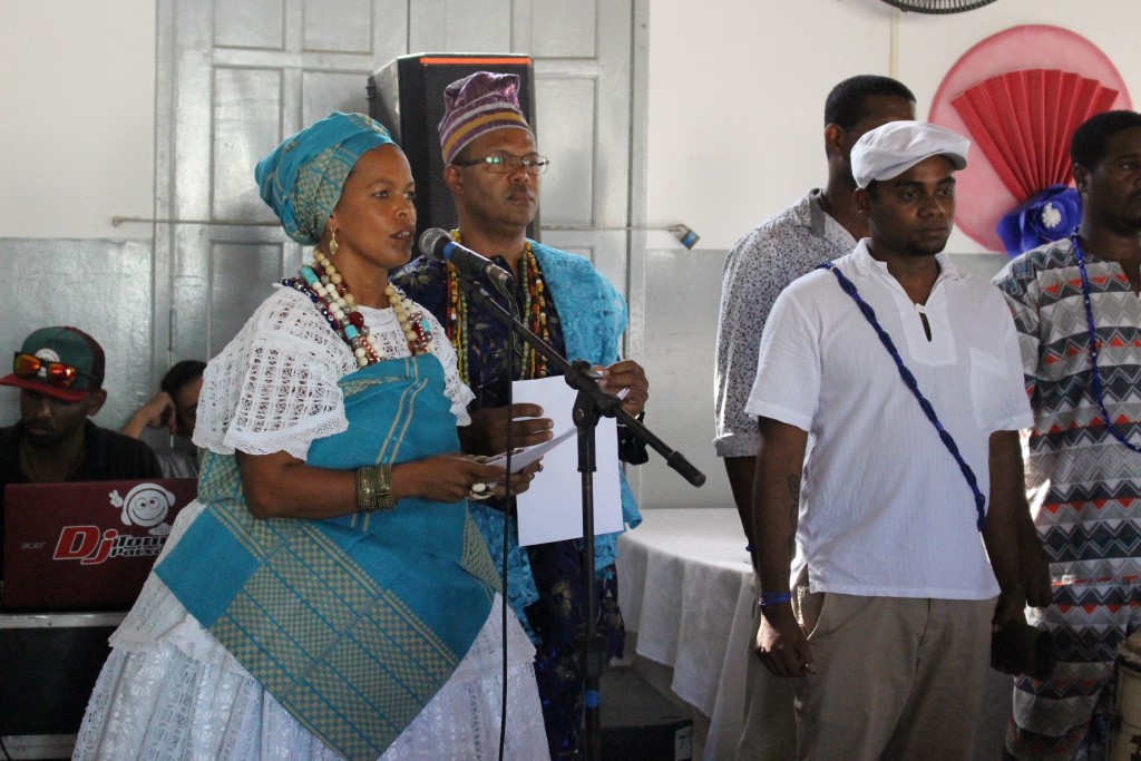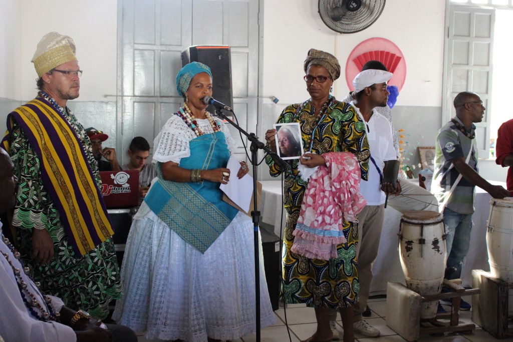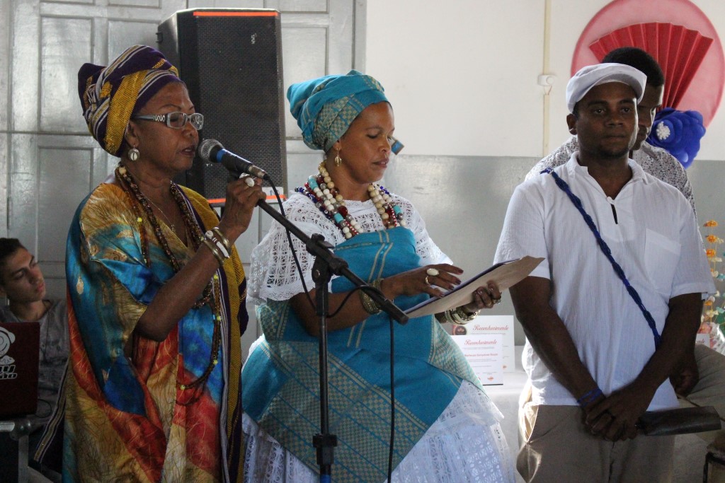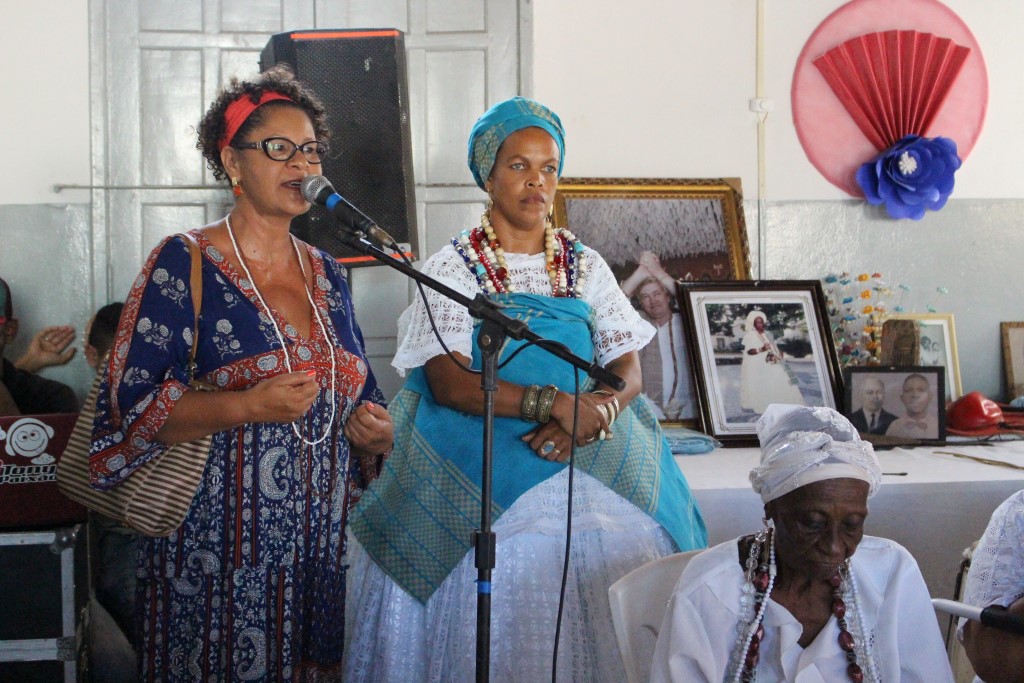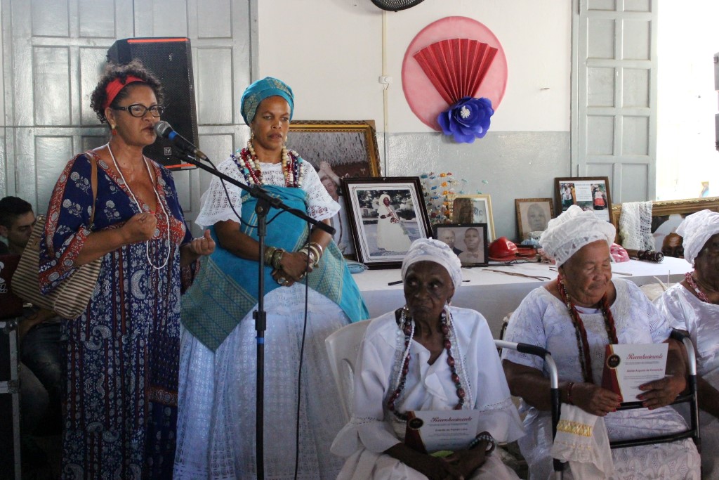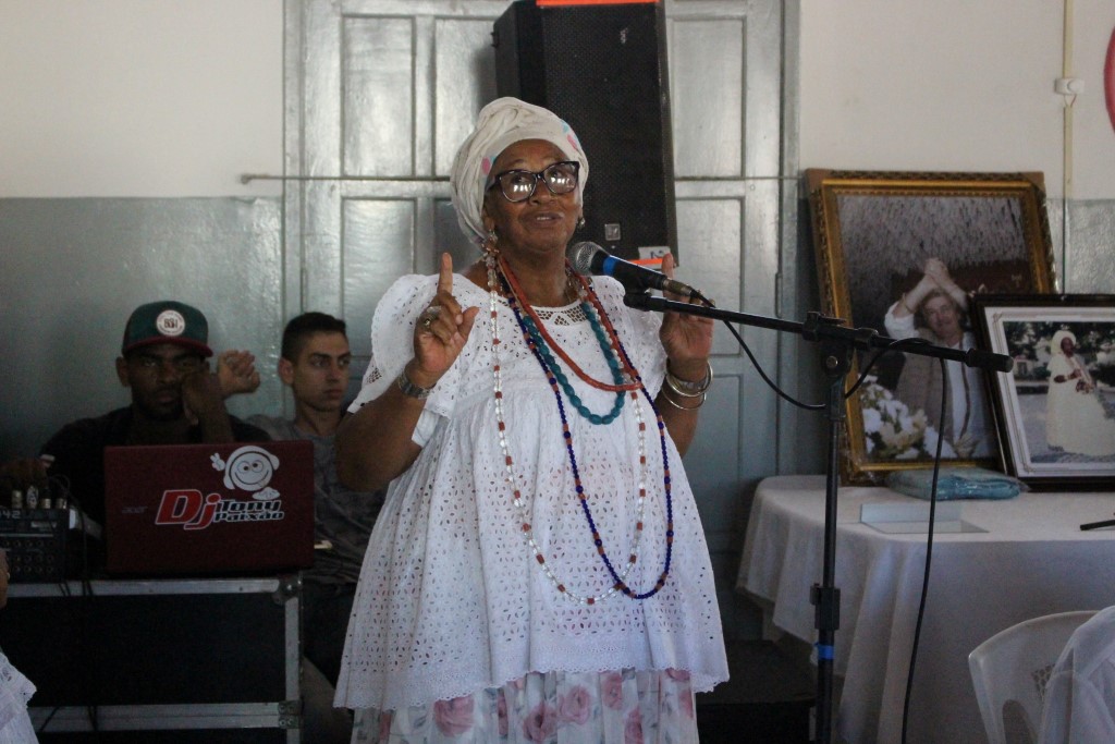 “É sempre uma honra estar aqui ao lado de mulheres guerreiras, que trazem no sangue e na raça a resistência do nosso povo e da nossa religião”, disse a pró-reitora da UFRB, Maria Goretti da Fonseca. Em sua fala, ela ressaltou o papel de destaque da UFRB na representação do povo negro do Recôncavo e colocou a instituição à disposição para continuar a “resistir, persistir e nunca desistir”. “Temos feito inclusão social e racial. Os meninos e meninas que entram nessa Universidade se reconhecem, se identificam, se percebem como negros e se fortalecem pra ir à luta do povo negro”, afirmou.