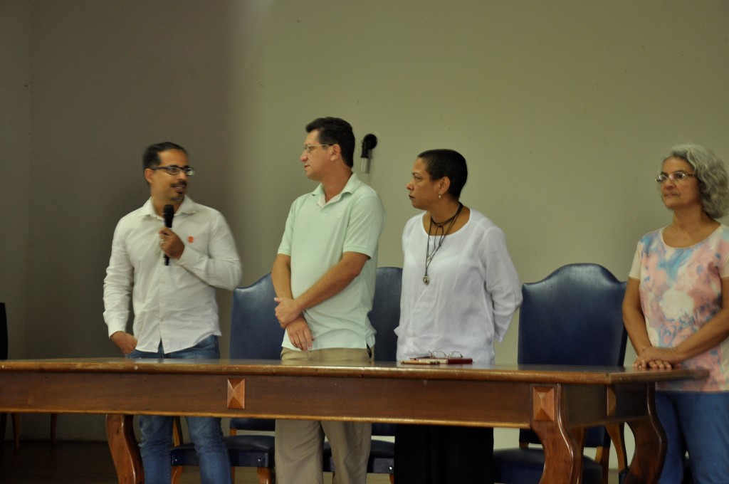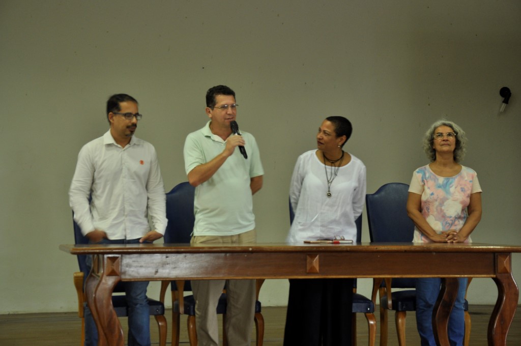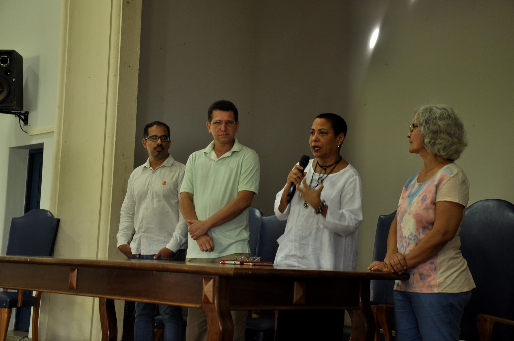 Da mesa de abertura da solenidade fizeram parte a vice-reitora Georgina Santos, o diretor do Centro de Ciências Exatas e Tecnológicas (CETEC), professor José Valentim Filho, o superintendente de Infraestrutura e Espaço Físico, Carlos André Oliveira Daniel; e a coordenadora do GT Águas, professora Rosa Alencar Santana de Almeida.