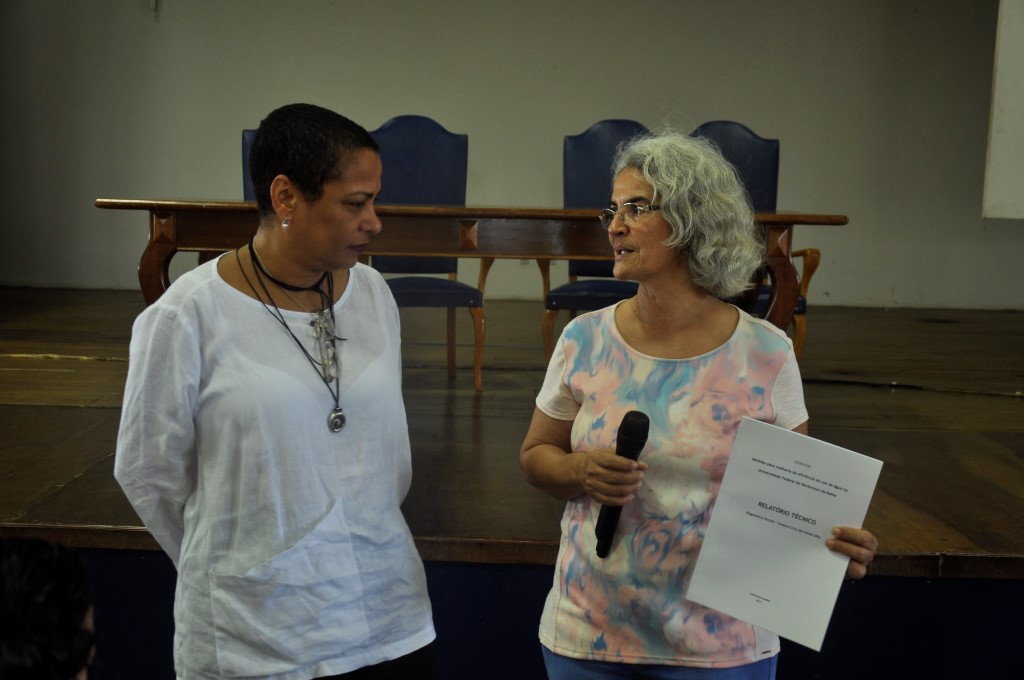 A entrega do documento feita pela coordenadora do GT Águas, professora Rosa Alencar, para a vice-reitora, professora Georgina Gonçalves dos Santos, aconteceu nesta última quinta-feira, Dia Mundial da Água, em programação ocorrida no Anfiteatro da Reitoria.