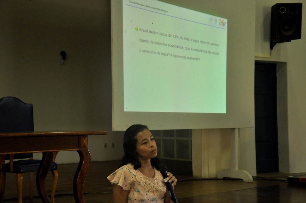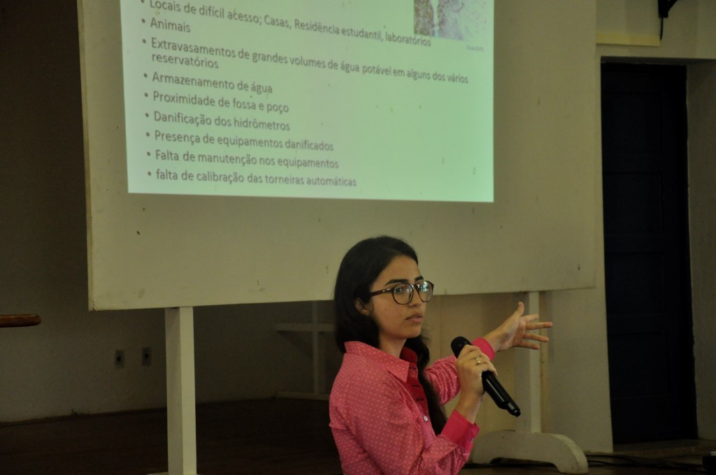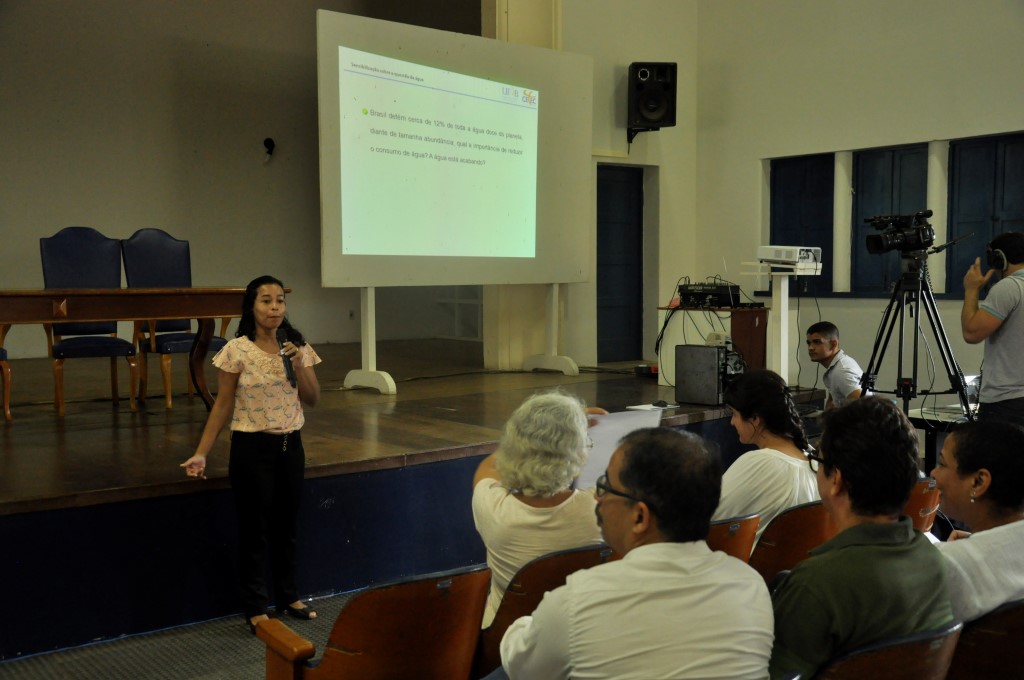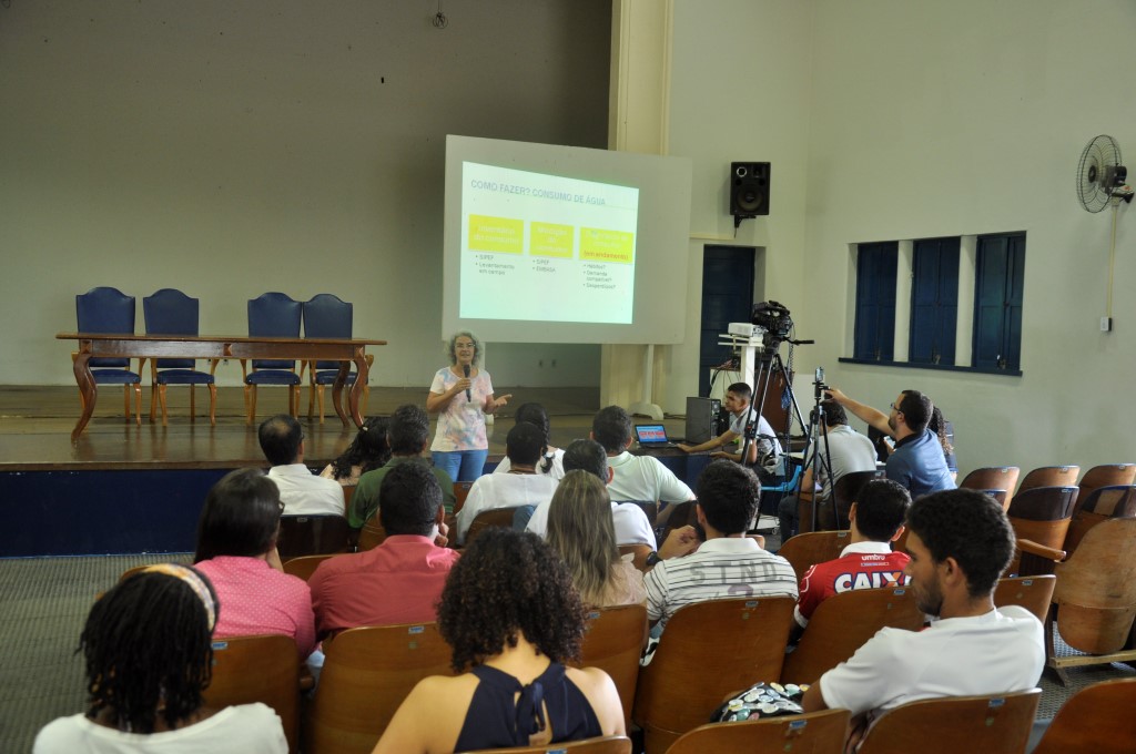 A professora Rosa Alencar fez a palestra “Conhecendo o consumo de água na UFRB”, na qual se propôs a apontar, estudar, discutir, diagnosticar e propor alternativas nos diversos pontos de consumo da UFRB. As professoras Gabriella Botelho e Anaxsandra Duarte falaram sobre “Sensibilização e consumo consciente”. Os alunos e integrantes do GT Águas, Jéssica Valéria, Djalma Santos, Eugênio Rodrigues e Laíza Santos de Oliveira falaram de suas pesquisas sobre transporte, consumo, armazenamento e desperdício de água. As pesquisas dos alunos fazem parte do desenvolvimento de trabalhos de conclusão de curso de Engenharia Sanitária e Ambiental.
