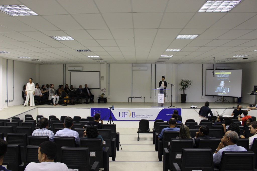 Participaram da cerimônia de abertura o reitor Silvio Soglia, a vice-reitora Georgina Gonçalves, pró-reitores, diretores de Centros de Ensino e representantes das entidades das classes docente e técnico-adminsitrativa. Abrindo as atividades, foi exibido um vídeo com depoimentos da comunidade acadêmica acerca do tema abordado na aula. “É importante chamar todos para esse debate num momento histórico de ameaça às instituições. A UFRB tem um papel importantíssimo no seu território. É o momento de abraçar esse projeto e defender essa instituição”, disse a professora Ana Paula Diório, em um dos depoimentos.