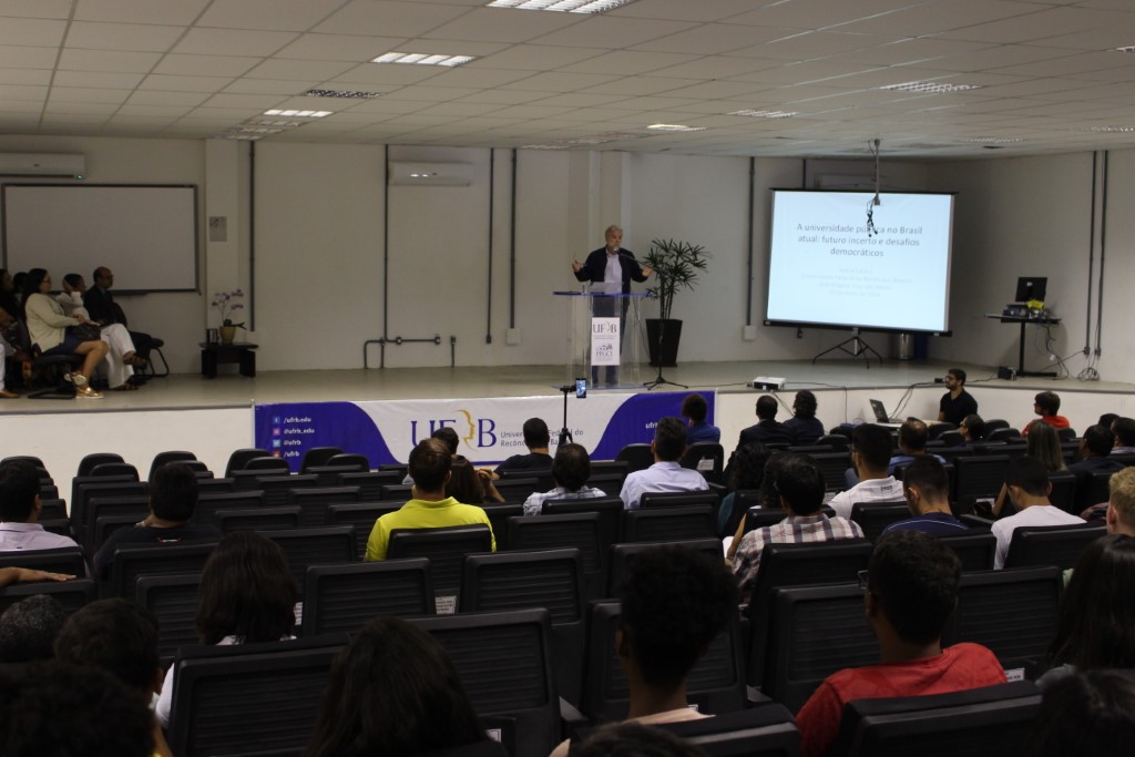 A Universidade Federal do Recôncavo da Bahia (UFRB) realizou nesta terça-feira, dia 15, no auditório da Biblioteca do campus de Cruz das Almas, a aula magna do semestre letivo 2018.1. O palestrante convidado foi o professor da Universidade do Estado do Rio de Janeiro (UERJ) e diretor da Fundação Santillana no Brasil, André Luiz de Figueiredo Lázaro, que abordou o tema “A Universidade Pública no Brasil Atual: Futuro Incerto e Desafios Democráticos”.