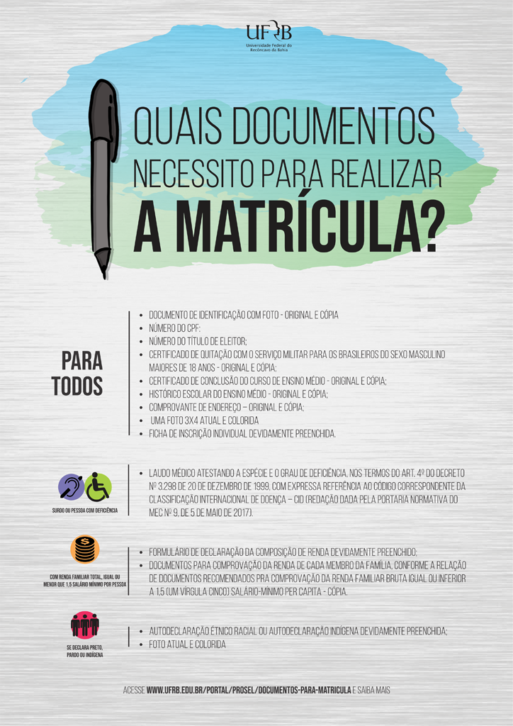 Para mais informações sobre o Processo Seletivo da UFRB, acesse o site www.ufrb.edu.br/prosel.