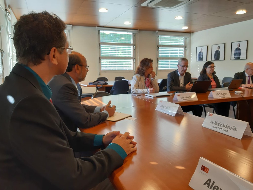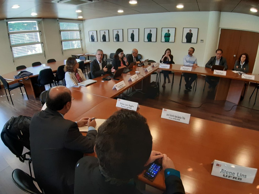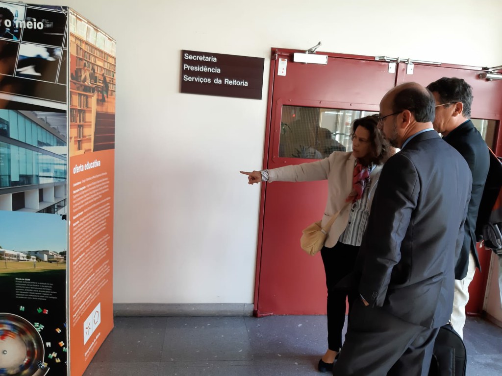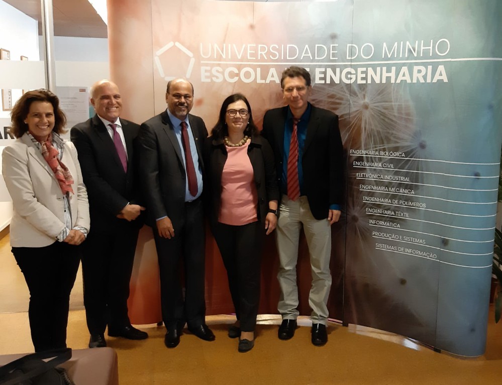 O reitor da Universidade Federal do Recôncavo da Bahia (UFRB), Silvio Soglia e o diretor do Centro de Ciências Exatas e Tecnológicas (CETEC/UFRB), professor José Valentim dos Santos Filho, foram recepcionados pelo reitor da UMinho, professor Rui Vieira e reafirmaram a continuidade do Protocolo de Cooperação entre as instituições, assinado em 2018. O Protocolo de Cooperação prevê a criação de uma turma especial de doutoramento na UMinho, para docentes e técnicos da UFRB, dirigido à área das Engenharias.