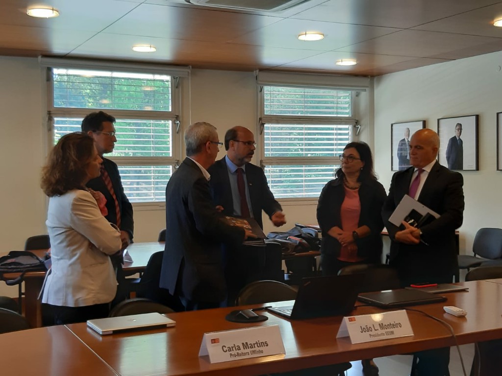 Silvio Soglia e José Valetim foram recebidos por uma comitiva, composta pela direção da Escola de Engenharia da UMinho e coordenadores dos programas de doutorados. O professor João Monteiro, presidente da EEUM apresentou a estrutura da Escola e também as áreas de investigação e as linhas de pesquisa. A Escola de Engenharia tem mais de 50 programas de pós-graduação, entre mestrados e doutorados.