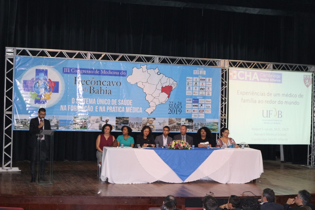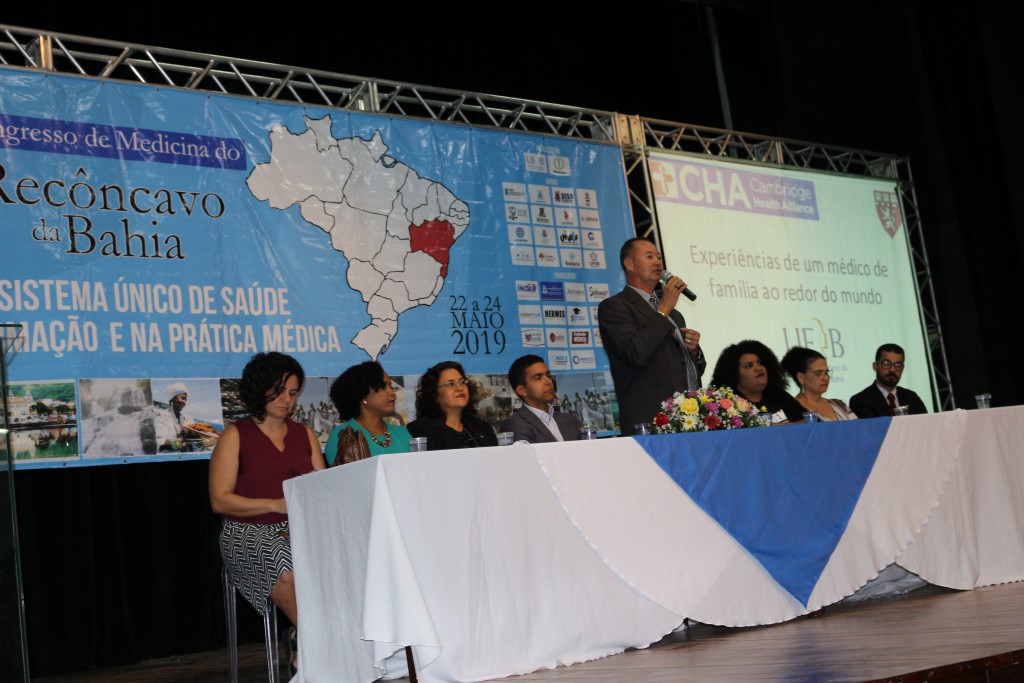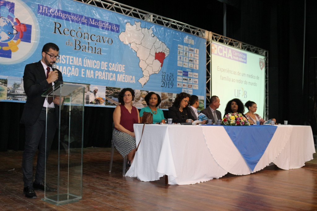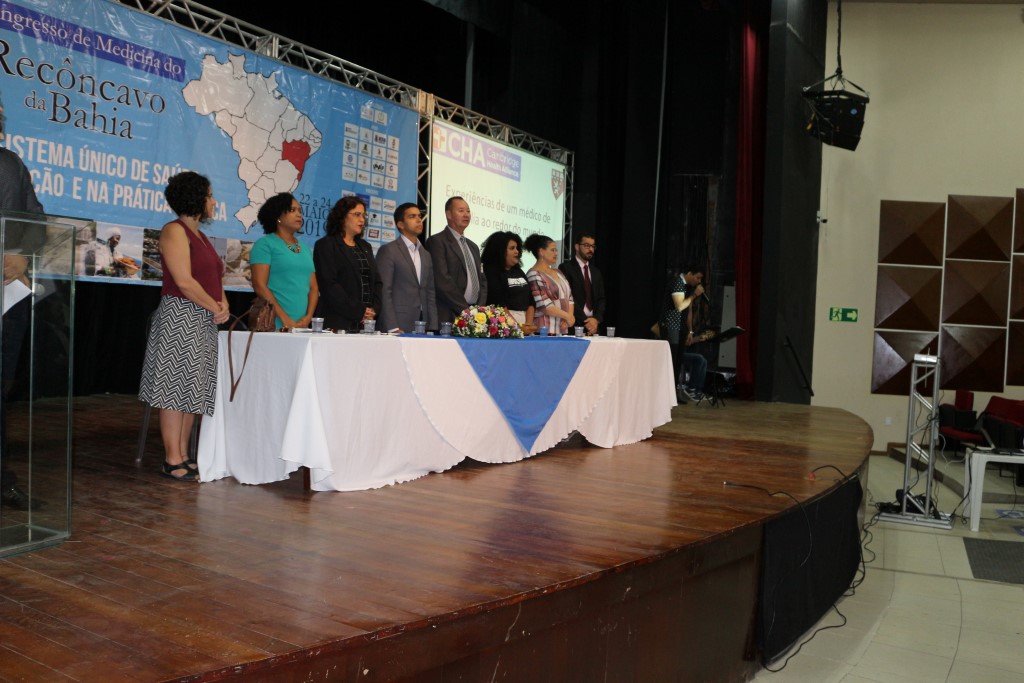 Compuseram a mesa de abertura a pró-reitora de Graduação; Rosineide Mubarack; a vice-diretora do Centro de Ciências da Saúde (CCS) da UFRB, Vânia Alves; o secretário de Saúde de Santo Antônio de Jesus, Leandro Lobo; o presidente do Conselho Municipal de Saúde, José Brito dos Santos; a coordenadora geral da Direção Executiva Nacional dos Estudantes de Medicina, Djerlly Silva; a coordenadora do Colegiado de Medicina, Luciana Barboza; a Secretária de Cultura, Turismo e Juventude, Dene Cortes; e o coordenador geral do evento, Joanderson Cruz. No platéia, estudantes, profissionais da saúde, professores e médicos do Recôncavo da Bahia.