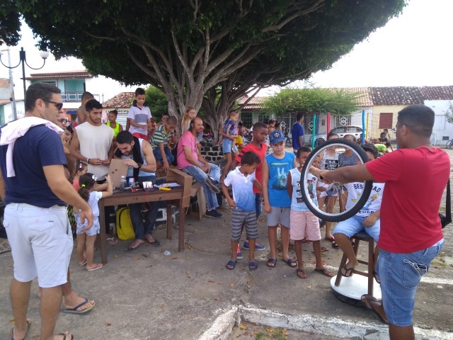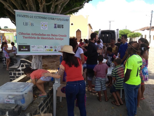 O projeto de extensão Ciências Articuladas em Baixa Grande, Território de Identidade da Bacia do Jacuípe, realizou Feiras de Ciências e oficinas no município de Baixa Grande na última semana do mês de maio. As oficinas contemplaram os seguintes temas: origem do Universo, Cosmogonias e Modelos Científicos, Dialogando sobre Física e Arte, e Brincando de ser Físico. A população do município teve ainda a oportunidade de participar da observação astronômica com telescópio na praça da Matriz, e das demonstrações de experimentos nas Feiras Livres de Baixa Grande e da comunidade de Italegre.