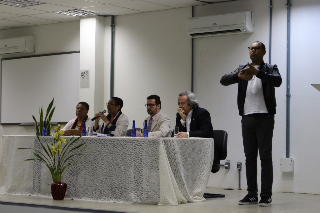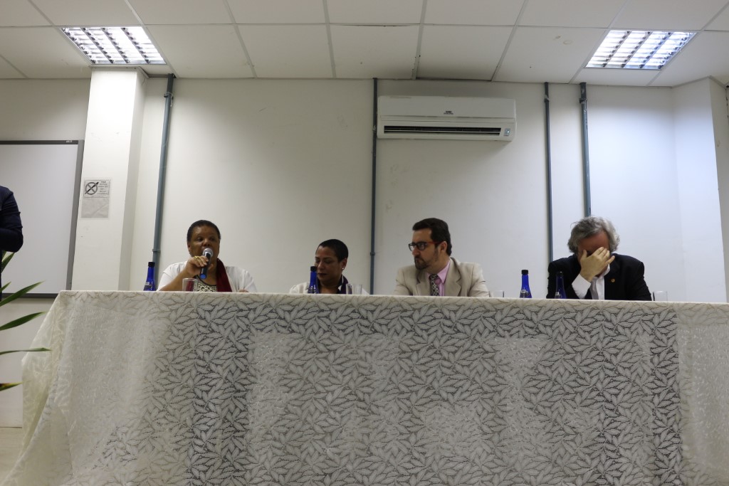 Ao final das exposições dos palestrantes, a comunidade acadêmica fez uma série de perguntas aos reitores João Salles, Joana Angélica e Fábio Josué e a ex-vice-reitora Georgina Gonçalves.