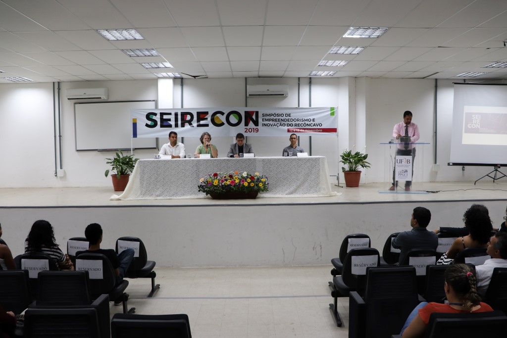 Nos dias 12 e 13 de novembro, a Universidade Federal do Recôncavo da Bahia (UFRB) promoveu o SEIRECON 2019, simpósio que teve como objetivo debater e incentivar o fortalecimento do sistema local de empreendedorismo e inovação do Recôncavo, por meio do estímulo e desenvolvimento do ensino empreendedor. Em sua primeira edição, o evento teve como tema os “Desafios e estratégias para aliar empreendedorismo criativo e desenvolvimento tecnológico ao ensino superior”.