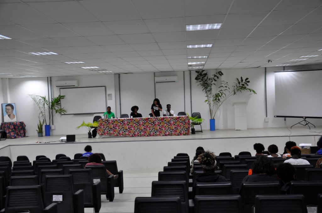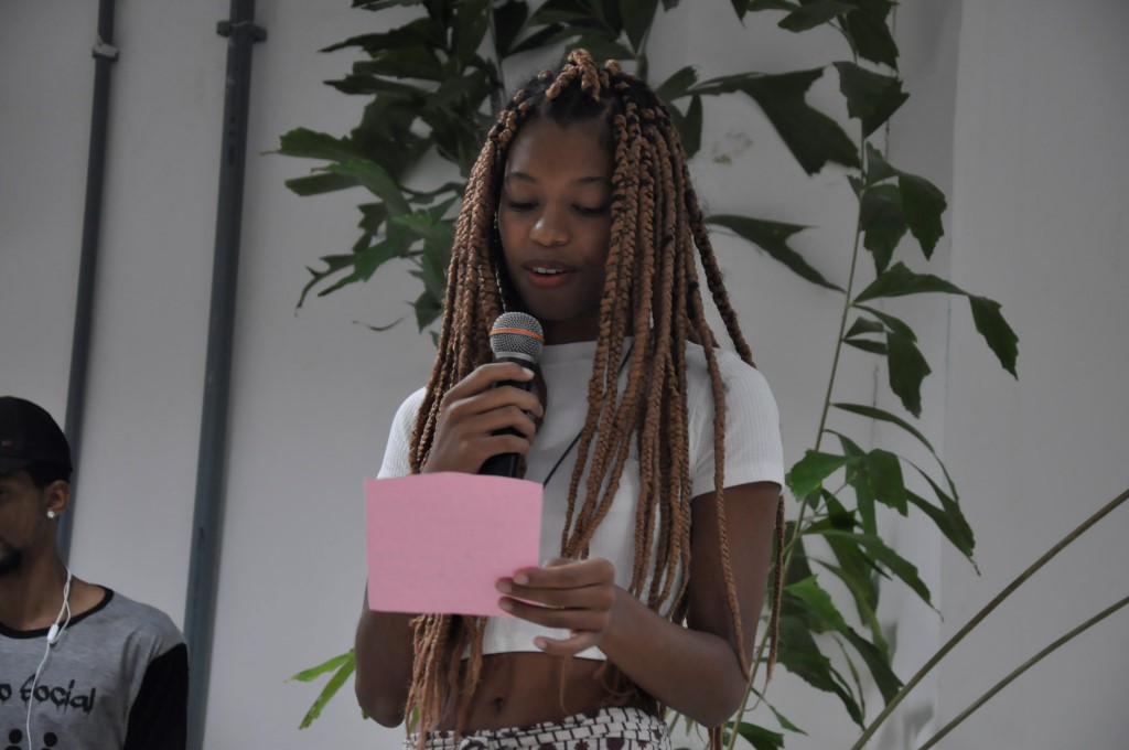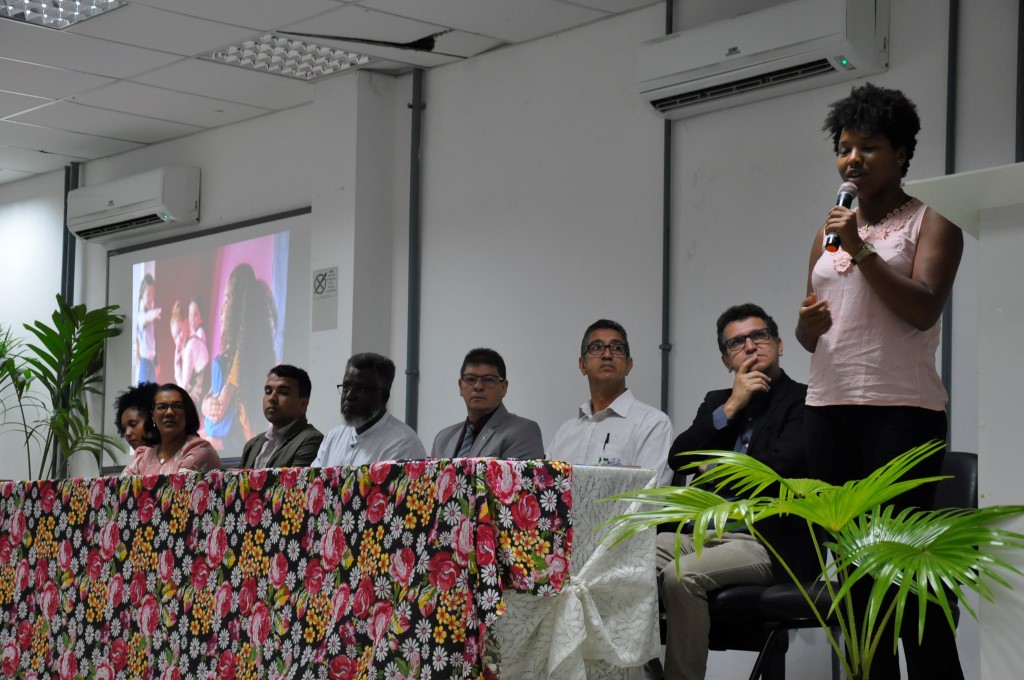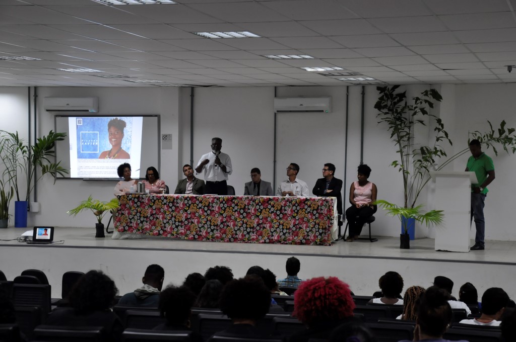 Em seguida foi realizada a Intervenção temática com uma apresentação dos jovens do projeto de extensão Educa Rap e mesas temáticas mediadas pelo servidor Elielson Aquino abordando os seguintes assuntos: “Raça, Tecnologia, Sociedade e Dinheiro”, ministrada pelo professor Igor Dantas; Interiorização da Educação e Desenvolvimento Regional; pela discente de Agronomia Aila Pereira Santos; Impactos do Racismo em Relação ao Ensino da Ciência e Tecnologia, pela discente de Engenharia Química da UFBA, Valeria Nogueira da Silva Barbosa; e Racismo Institucional no Ambiente Acadêmico e no Mercado de Trabalho, proferida pela Engenheira de Pesca pela UFRB, Luciana Oliveira.