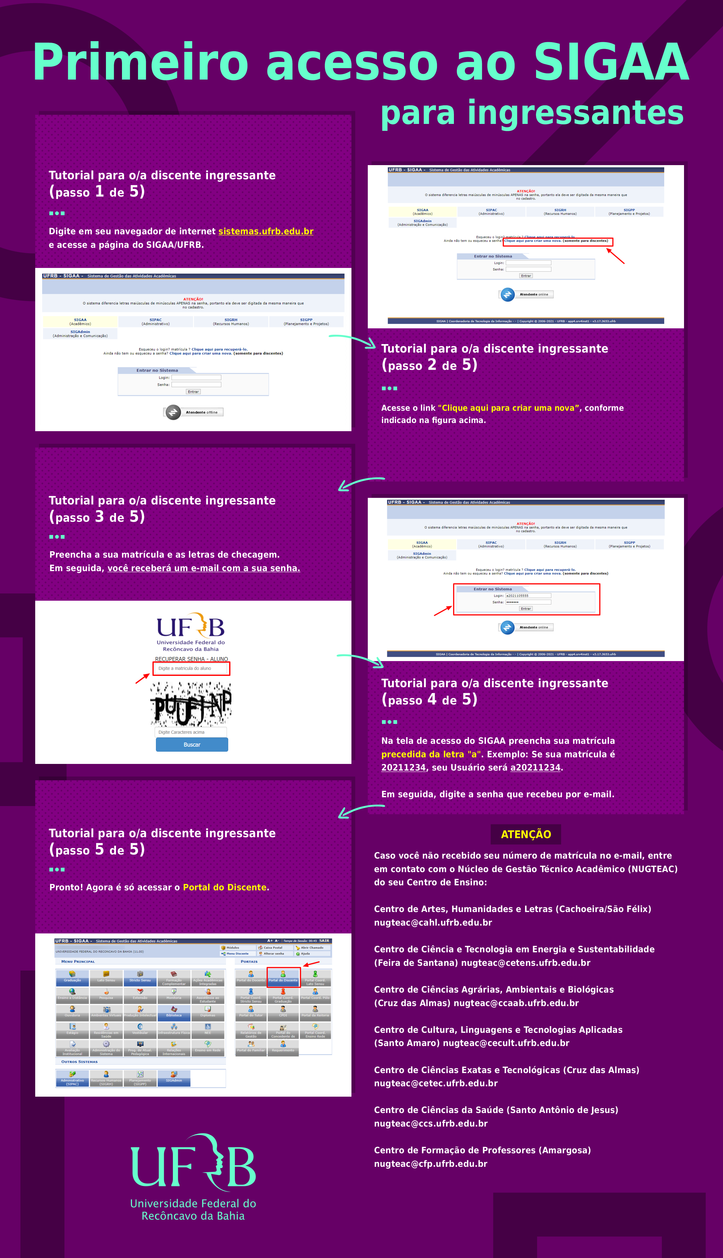 Para realizar o primeiro acesso no SIGAA os ingressantes do semestre 2021.1 devem realizar o passo a passo descrito no tutorial no fim da matéria.