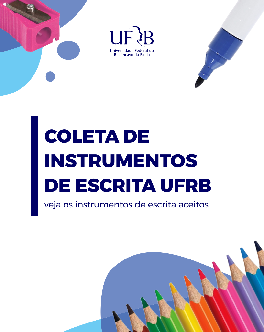 A Universidade Federal do Recôncavo da Bahia (UFRB) dispõe, a partir de hoje (29), de caixas coletoras para recebimento de instrumentos de escrita usados. Os instrumentos de escrita são objetos como: lápis grafite, lápis de cor, lapiseiras, canetas, borrachas, apontadores, marca texto, marcadores permanentes, marcadores para quadro branco, entre outros.