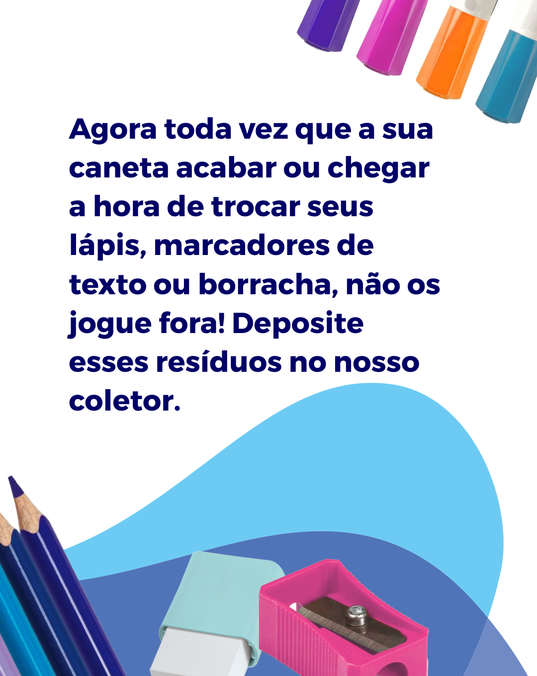 Estudantes, técnicos, docentes e terceirizados podem depositar os instrumentos de escrita que não tenham mais utilidades nas caixas coletoras, colaborando para a destinação adequada deste tipo de resíduo em um dos pontos de coleta localizados em todos os prédios do Campus Cruz das Almas e nos pavilhões de aulas dos Centros de Ensino.