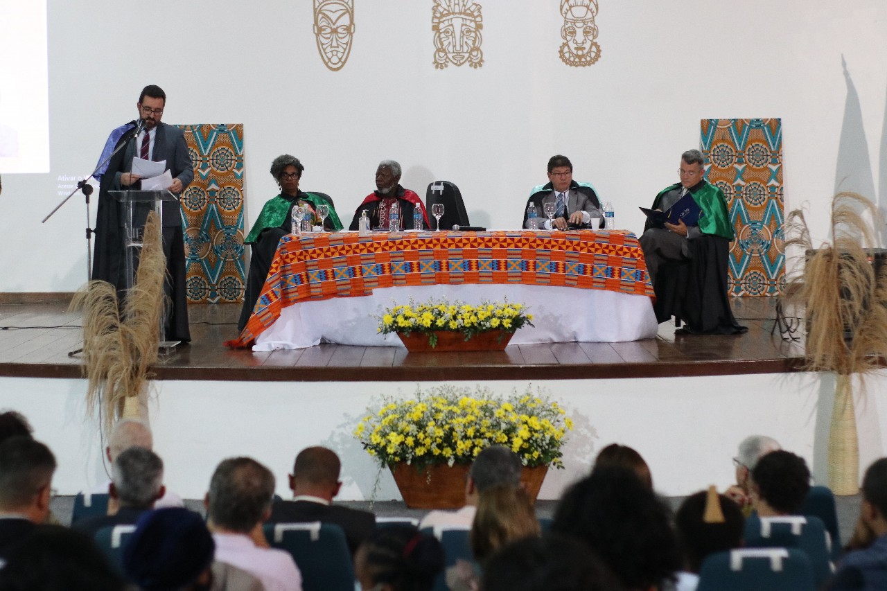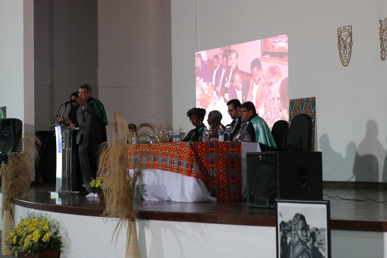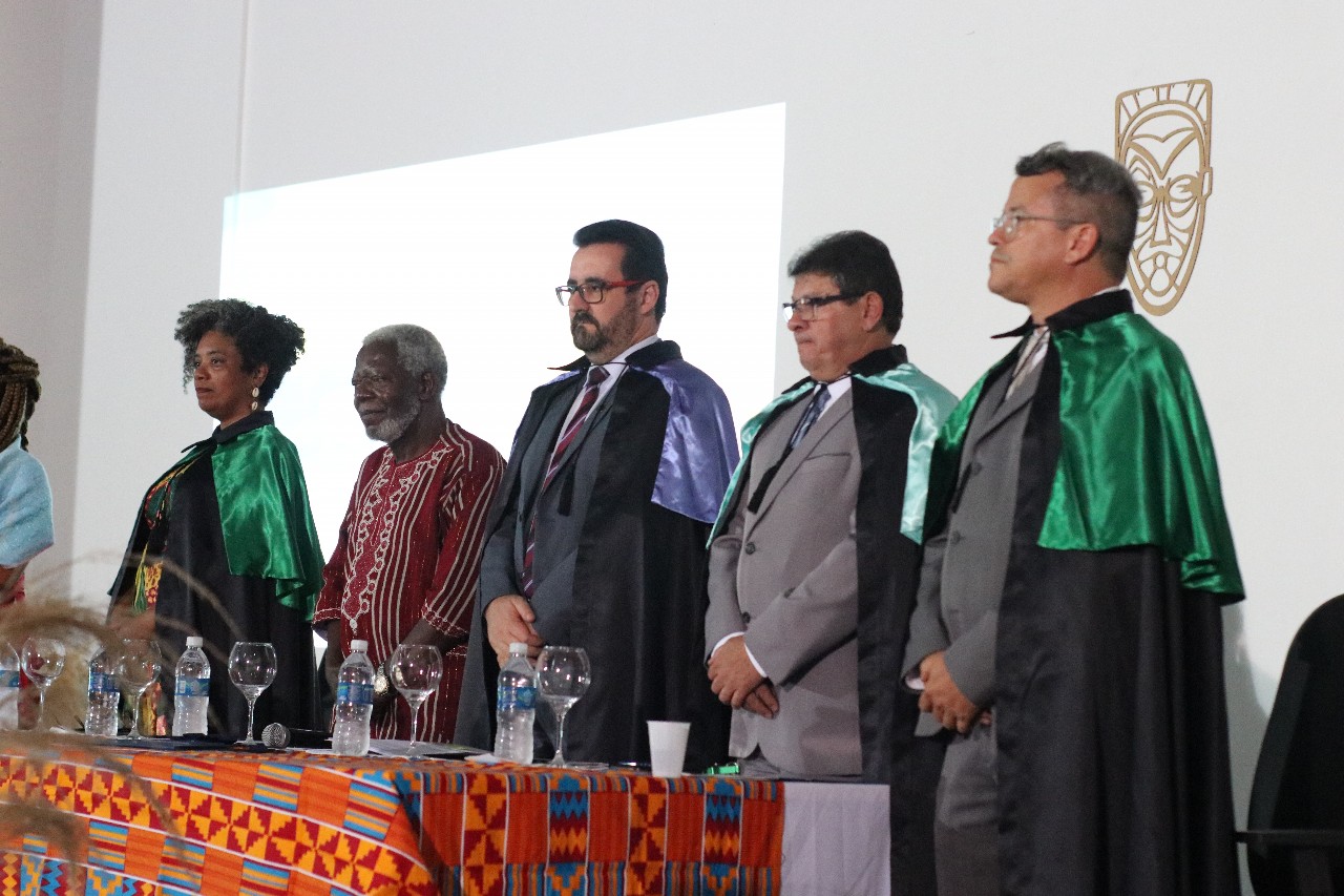 A mesa de honra foi composta pelas presenças do reitor e vice-reitor da UFRB, respectivamente, Fábio Josué dos Santos e José Pereira Mascarenhas Bisneto; os diretores Dyane Brito Reis Santos, do Centro de Artes, Humanidades e Letras e Danillo Silva Barata, do Centro de Cultura, Linguagens e Tecnologias Aplicadas; e o homenageado, professor Kabengele Munanga. Pela ordem, fizeram uso da palavra, Dyane Brito Reis Santos, Danillo Silva Barata, Kabengele Munanga, José Mascarenhas Bisneto e Fábio Josué.
