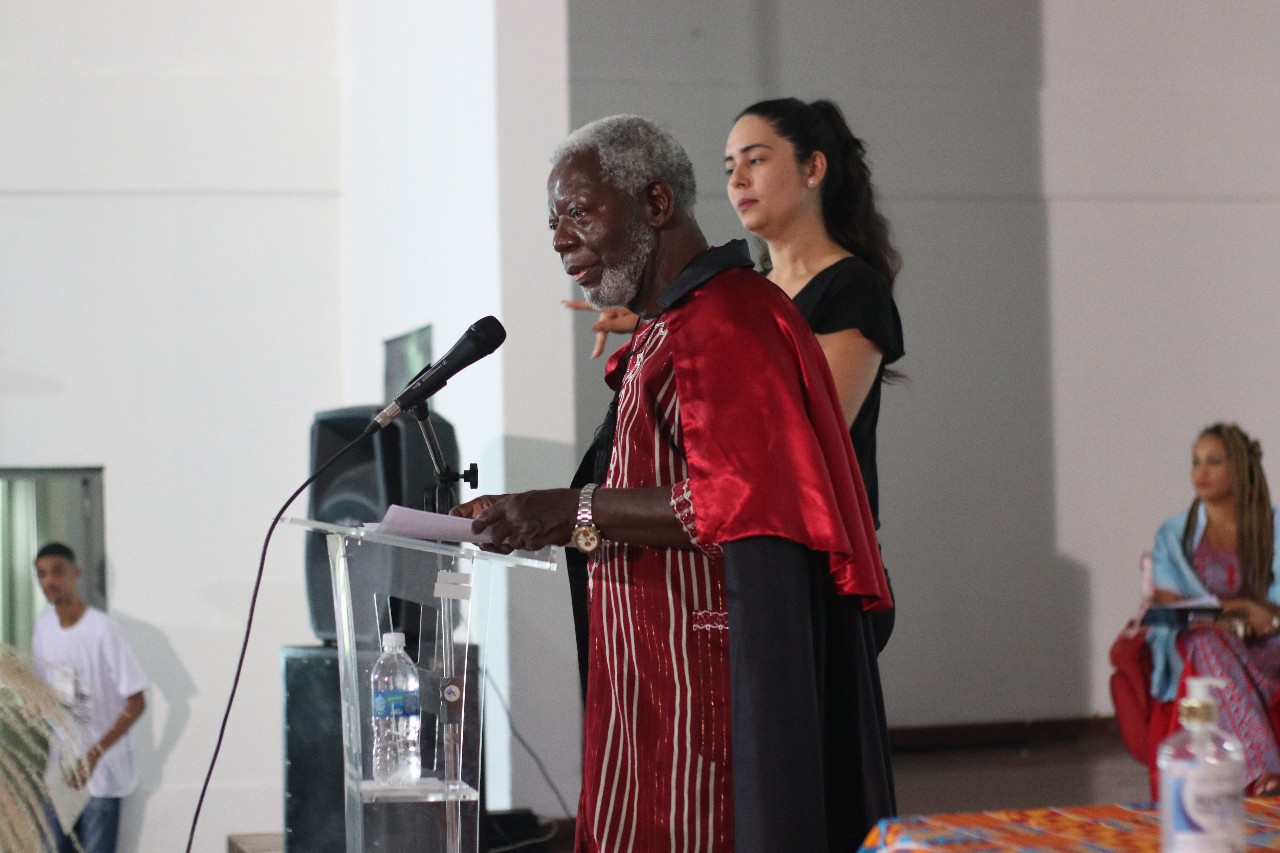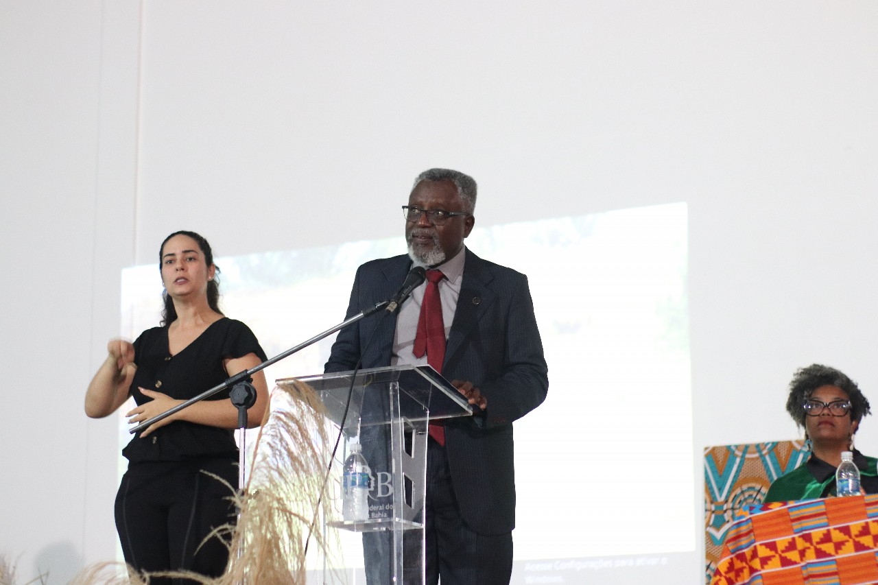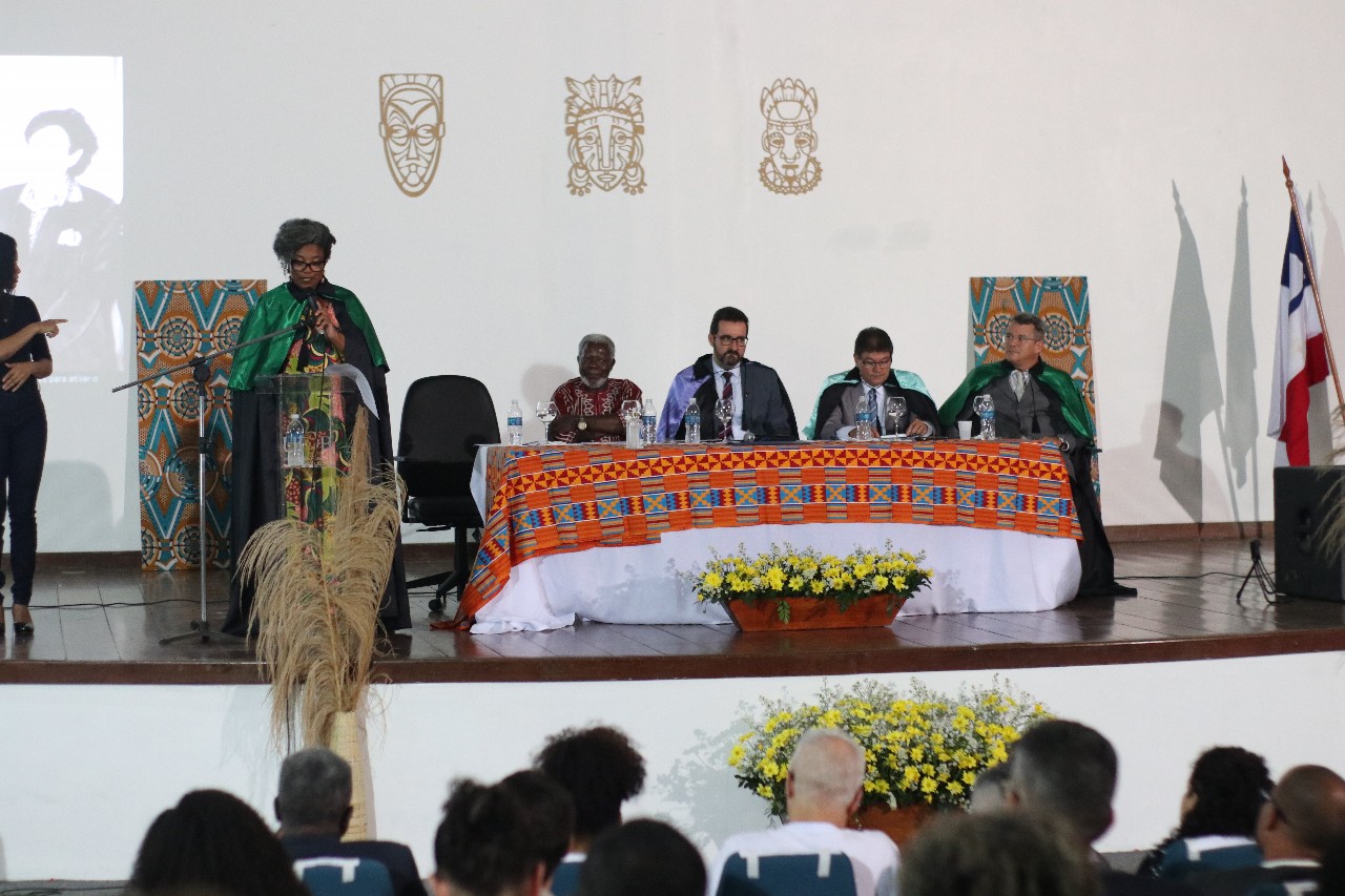 A mesa de honra foi composta pelas presenças do reitor e vice-reitor da UFRB, respectivamente, Fábio Josué dos Santos e José Pereira Mascarenhas Bisneto; os diretores Dyane Brito Reis Santos, do Centro de Artes, Humanidades e Letras e Danillo Silva Barata, do Centro de Cultura, Linguagens e Tecnologias Aplicadas; e o homenageado, professor Kabengele Munanga. Pela ordem, fizeram uso da palavra, Dyane Brito Reis Santos, Danillo Silva Barata, Kabengele Munanga, José Mascarenhas Bisneto e Fábio Josué.