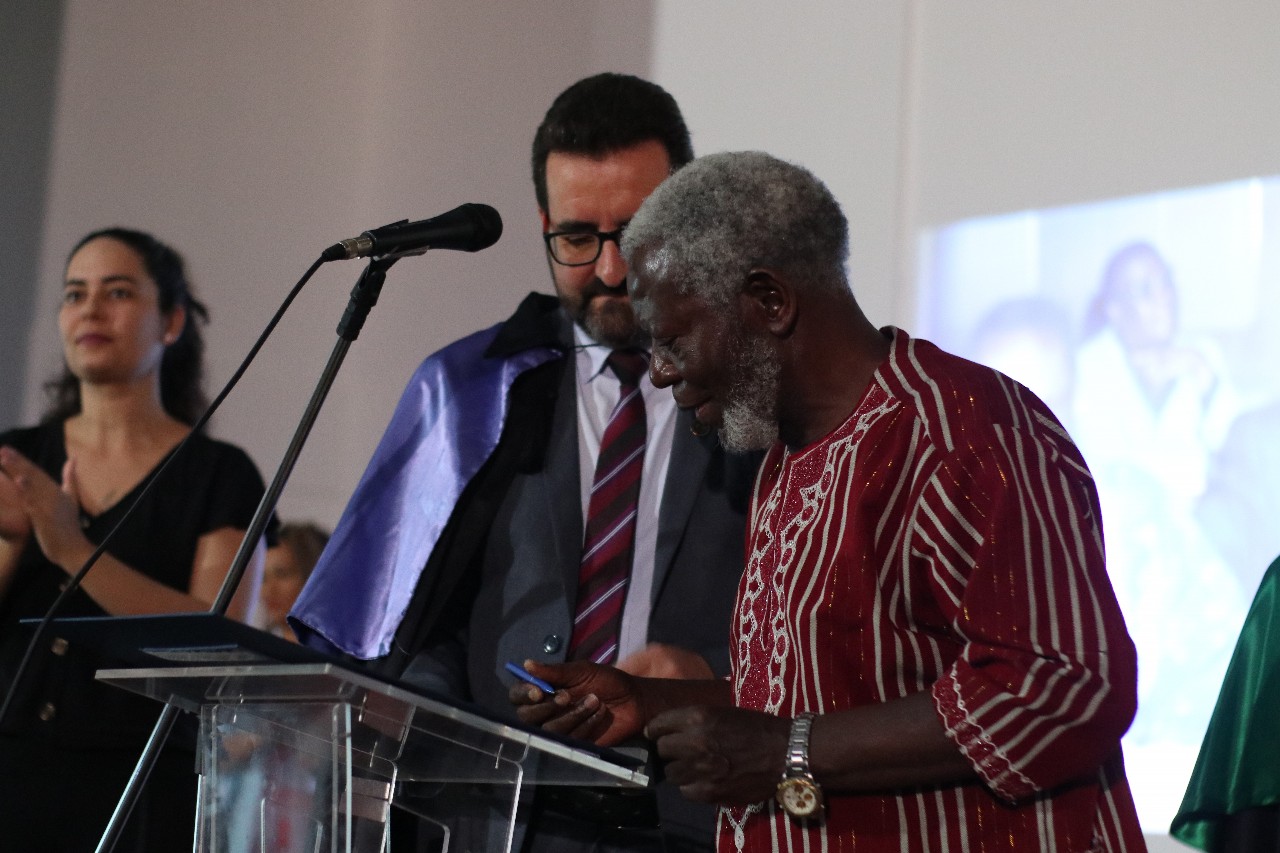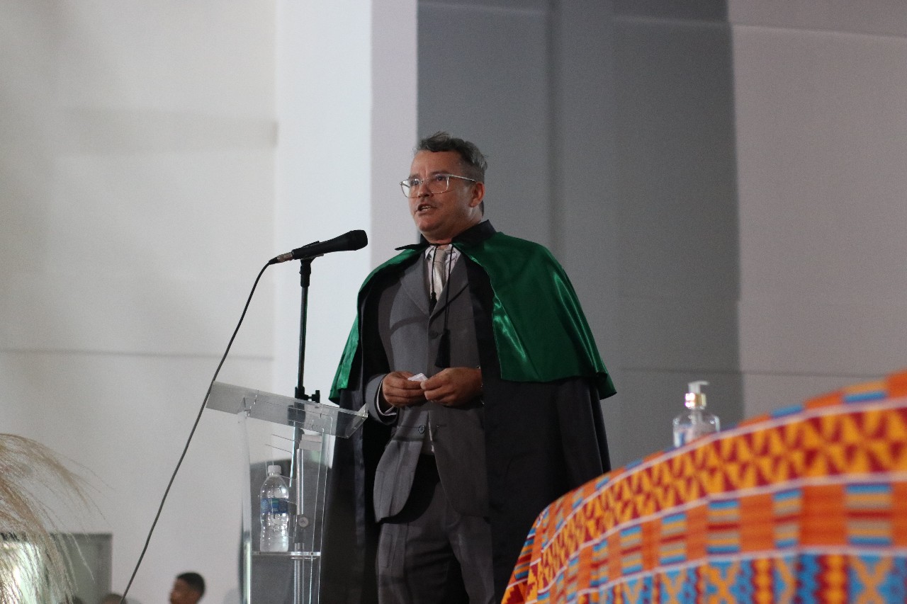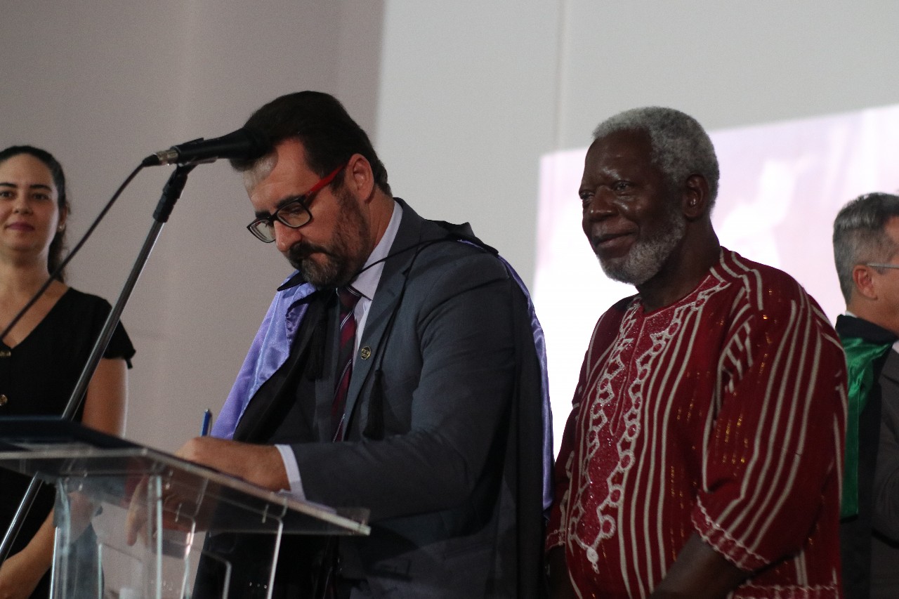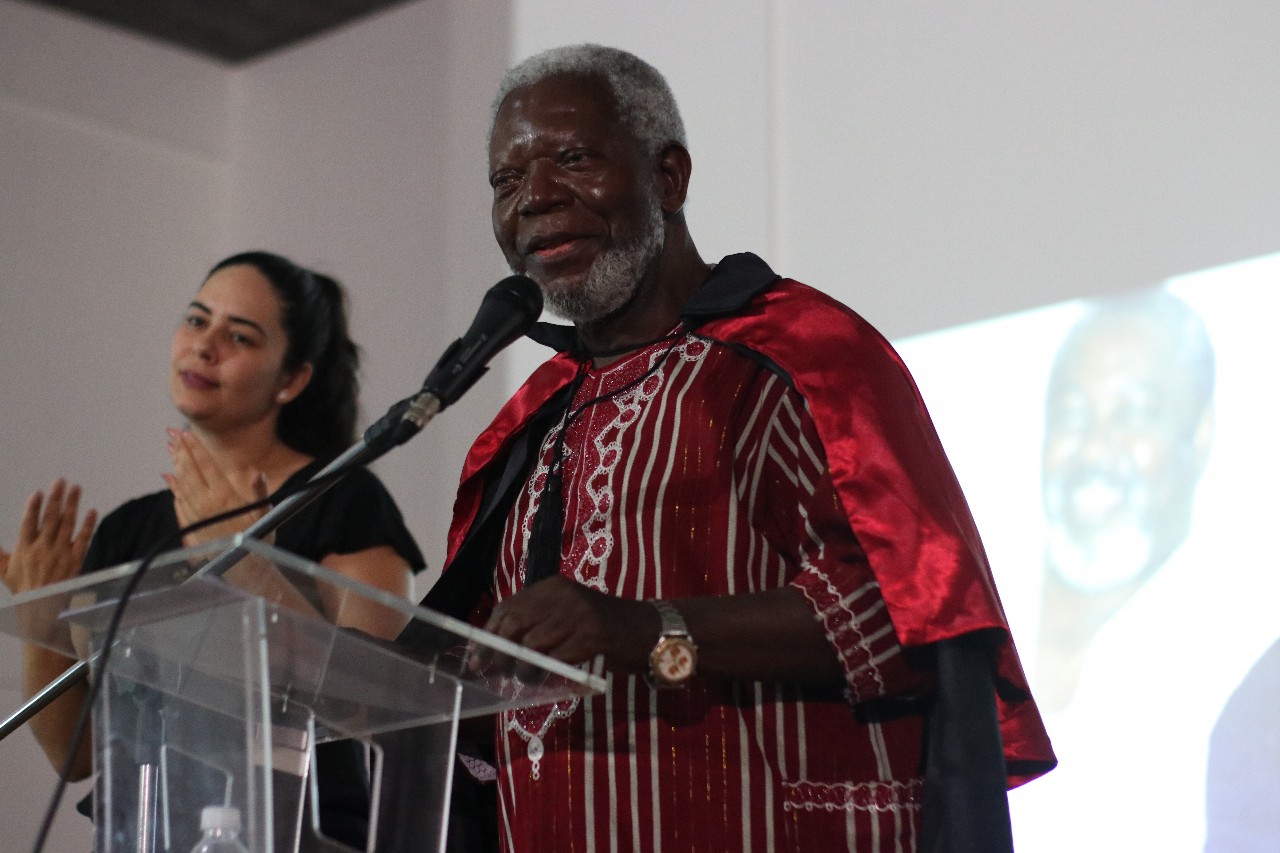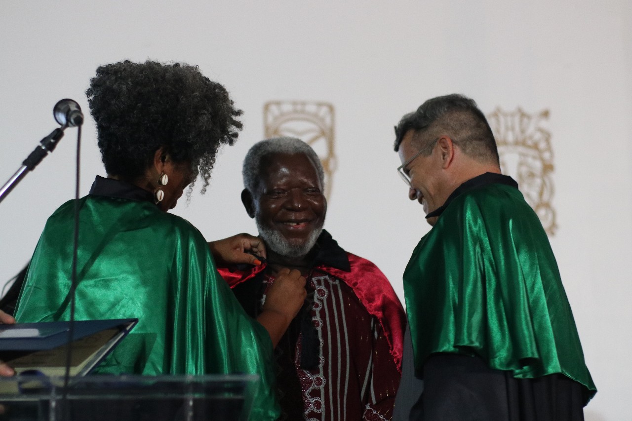 O educador negro, ativista da luta antirracista, intelectual e pesquisador de estudos negros e afro-brasileiros, Kabengele Munanga, 79 anos, recebeu o título de Doutor Honoris Causa da Universidade Federal do Recôncavo da Bahia (UFRB), em sessão solene do Conselho Universitário (CONSUNI), realizada na tarde de ontem, dia 8, no auditório do Centro de Artes, Humanidades e Letras (CAHL).