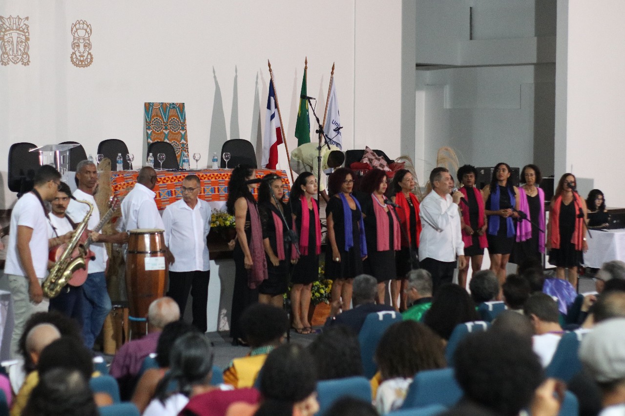 As apresentações do Canto Coral da UFRB, regido pelo maestro José Alípio de Oliveira Martins; e do cantor, compositor e instrumentalista Levy Emmanuel marcaram as atividades musicais de homenagem ao professor Kabengele Munanga.