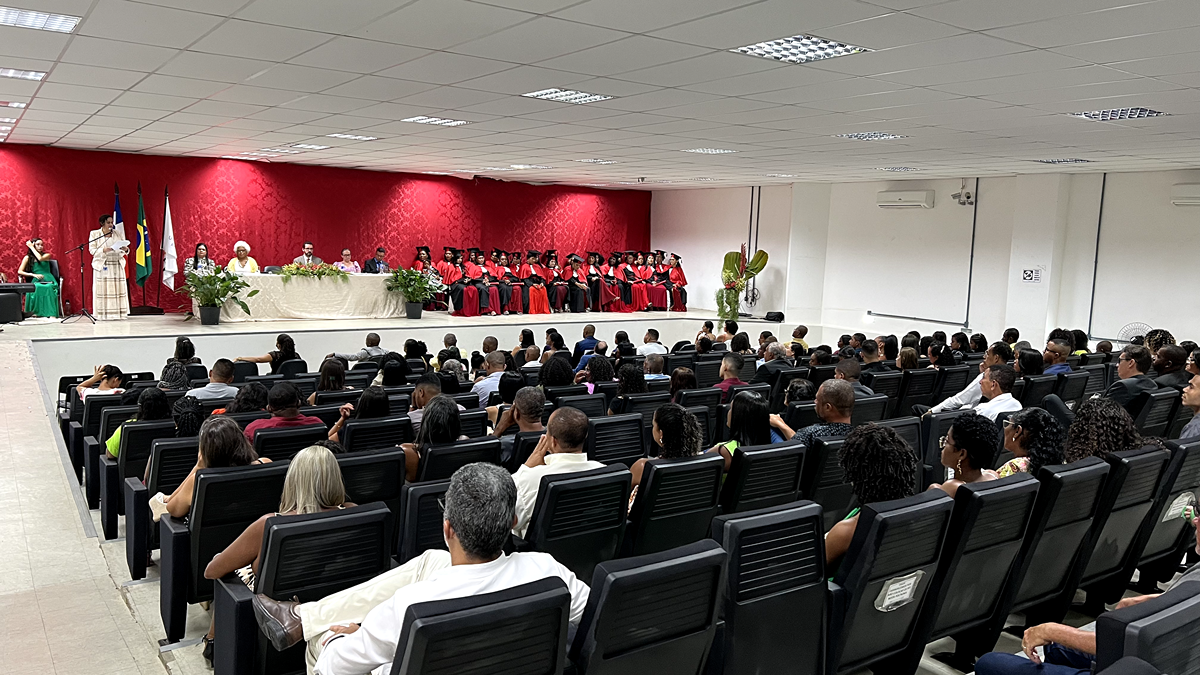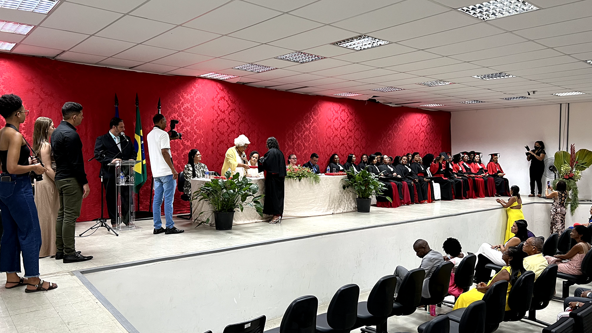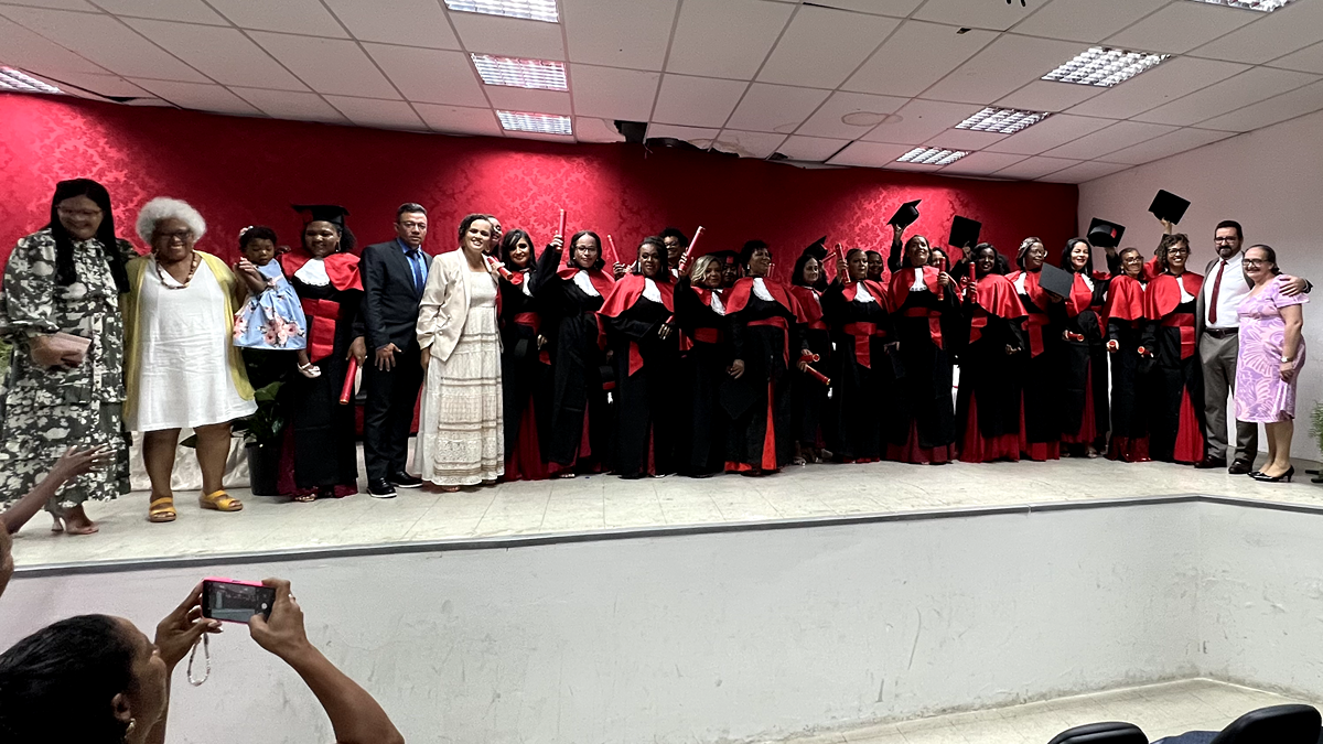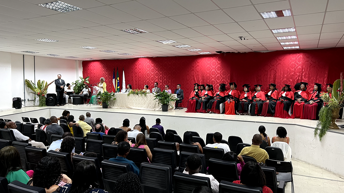Vinte e três concluintes do curso de Licenciatura em Pedagogia, do município de Castro Alves, participaram da cerimônia de colação de grau, na noite do dia 24, no auditório da Biblioteca da Universidade Federal do Recôncavo da Bahia (UFRB), Campus Cruz das Almas. As professoras licenciadas fizeram parte da turma do Plano Nacional de Formação de Professores (Parfor), vinculada ao Centro de Formação de Professores (CFP), da UFRB. A Turma 2018 do Parfor teve aulas ministradas por professores do CFP, em escola publica, no próprio município de Castro Alves, pela primeira vez.