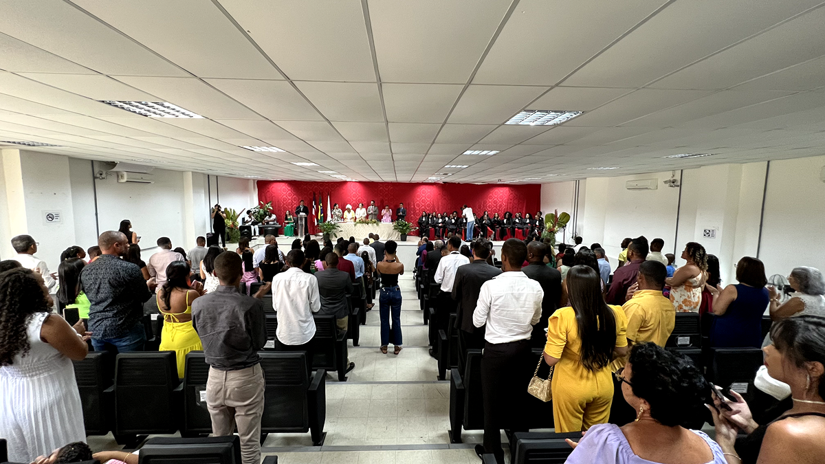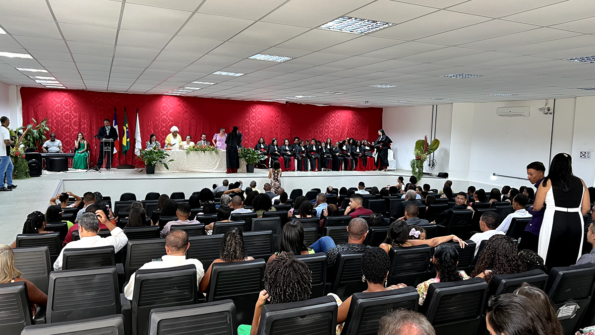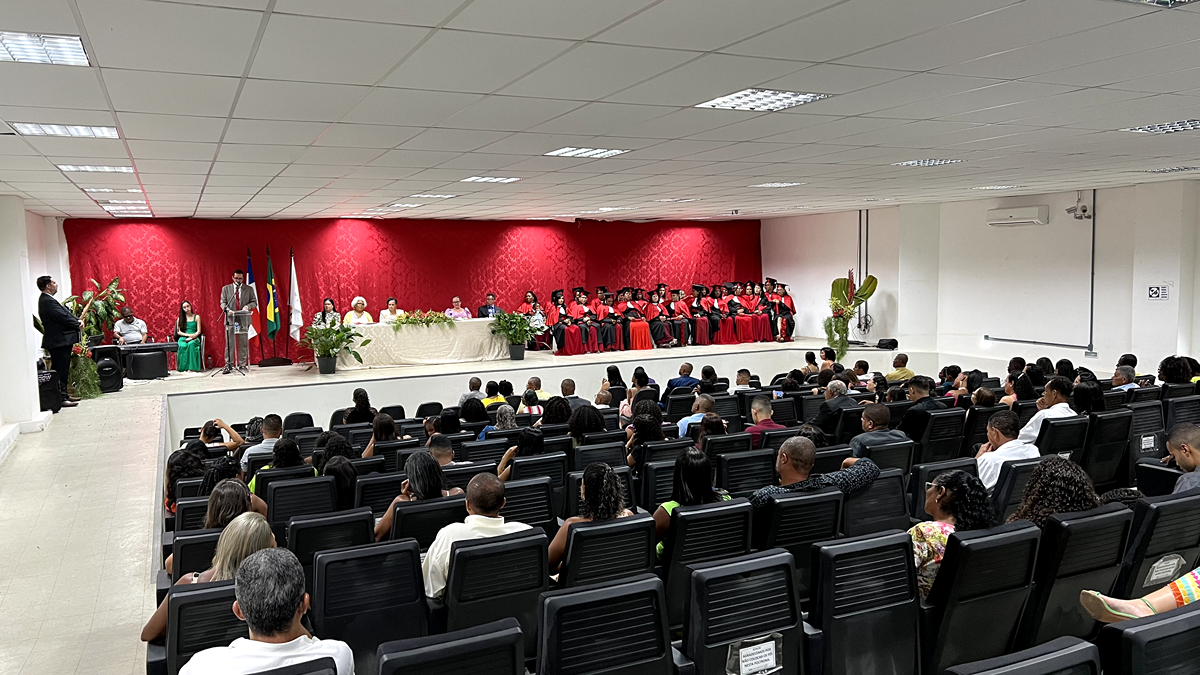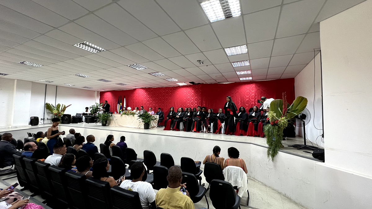 Vinte e três concluintes do curso de Licenciatura em Pedagogia, do município de Castro Alves, participaram da cerimônia de colação de grau, na noite do dia 24, no auditório da Biblioteca da Universidade Federal do Recôncavo da Bahia (UFRB), Campus Cruz das Almas. As professoras licenciadas fizeram parte da turma do Plano Nacional de Formação de Professores (Parfor), vinculada ao Centro de Formação de Professores (CFP), da UFRB. A Turma 2018 do Parfor teve aulas ministradas por professores do CFP, em escola publica, no próprio município de Castro Alves, pela primeira vez.