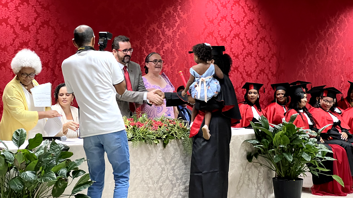 A recém-formada Taíle Carvalho Brito Barros, 33 anos, moradora do Sítio do Desterro, zona rural de Castro Alves, disse que viveu uma experiência transformadora ao fazer o curso de Licenciatura em Pedagogia. “Minha história como professora e cursista começou quando deu início às aulas, lembro-me como se fosse hoje, toda emoção que senti, e o início de uma mudança de vida pessoal e profissional”, relatou Taíle.