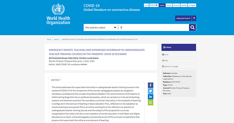 OMS publica artigo de docente da UFRB sobre ensino remoto no cenário da COVID-19