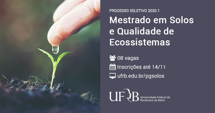 UFRB abre inscrição para Mestrado em Solos e Qualidade de Ecossistemas