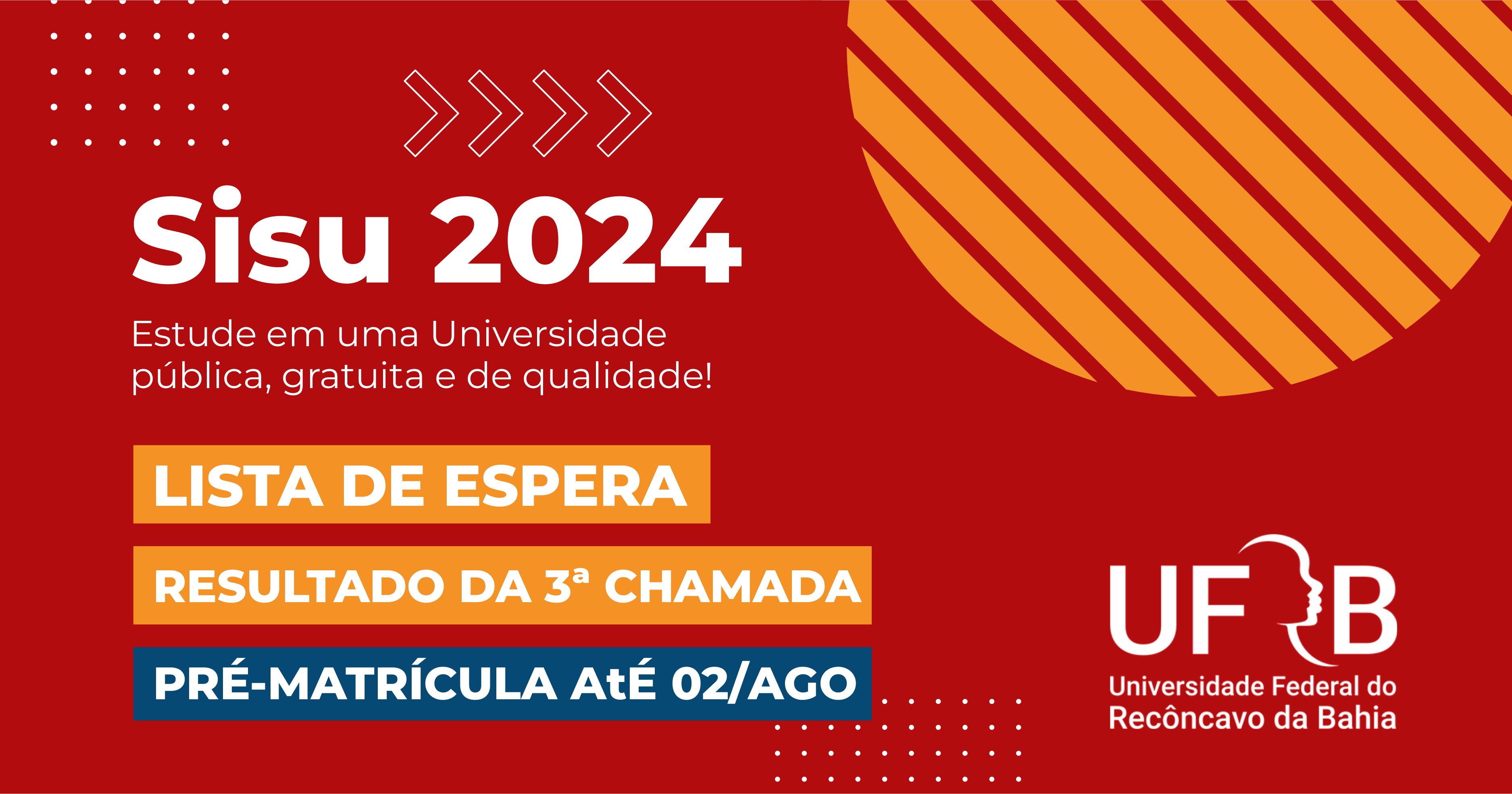 SISU 2024: UFRB publica 3ª chamada da Lista de Espera; convocados(as) devem fazer pré-matrícula até 6/8