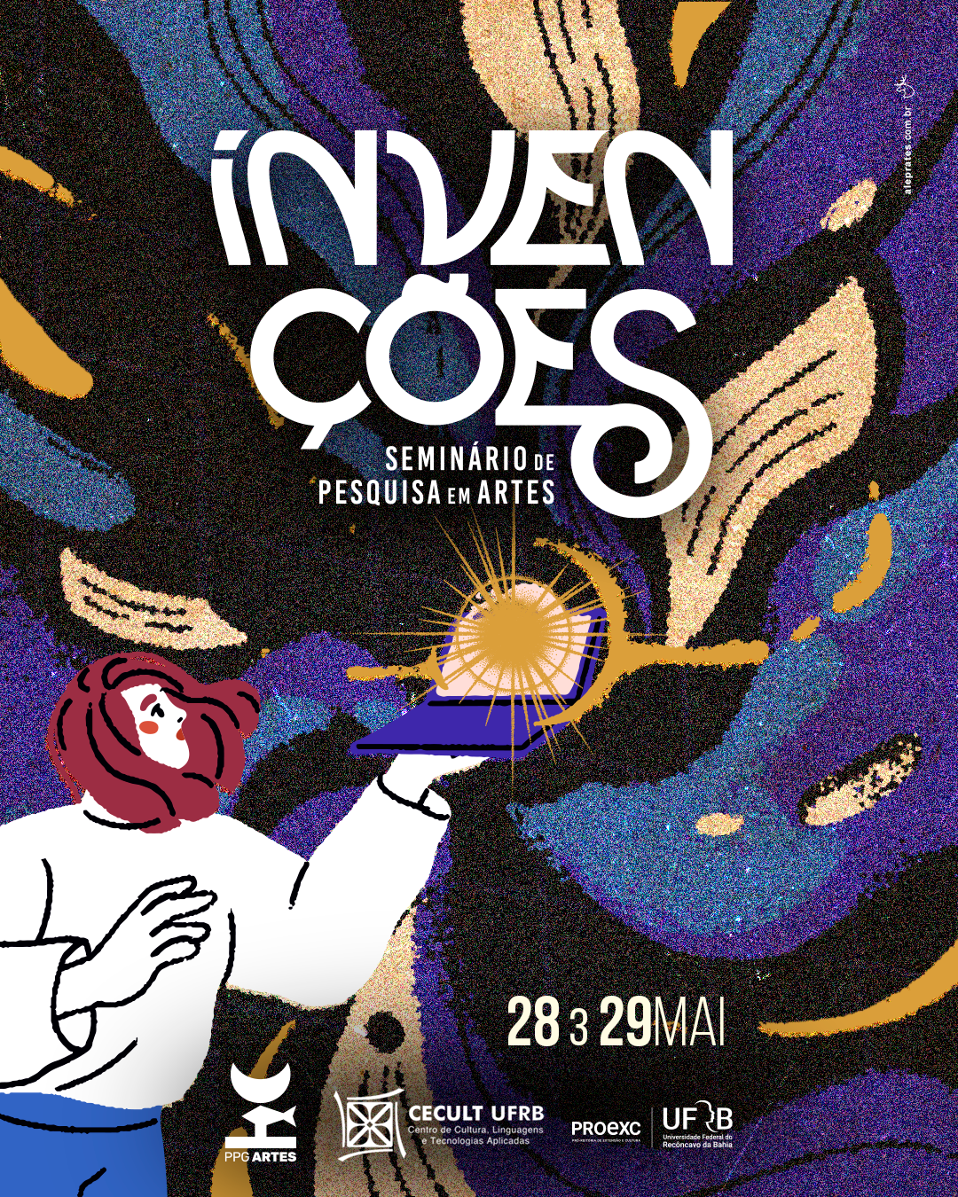 Nos dias 28 e 29 de maio de 2025, o Programa de Pós-Graduação em Artes (PPGARTES) da UFRB realizou seu primeiro evento: o INVENÇÕES: Seminário de Pesquisa em Artes. Com o propósito de dar vazão à vocação de invenção com rigor, que marca a pesquisa em artes no século XXI, o seminário reuniu artistas-pesquisadores convidados e mestrandos do programa em sessões científico-artísticas abertas à comunidade acadêmica e ao público externo.