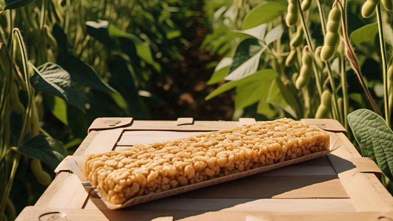 A presente invenção refere-se uma barra de cereal de gérmen de soja coberta com uma camada de alfarroba e adicionada de outros grãos e frutas...