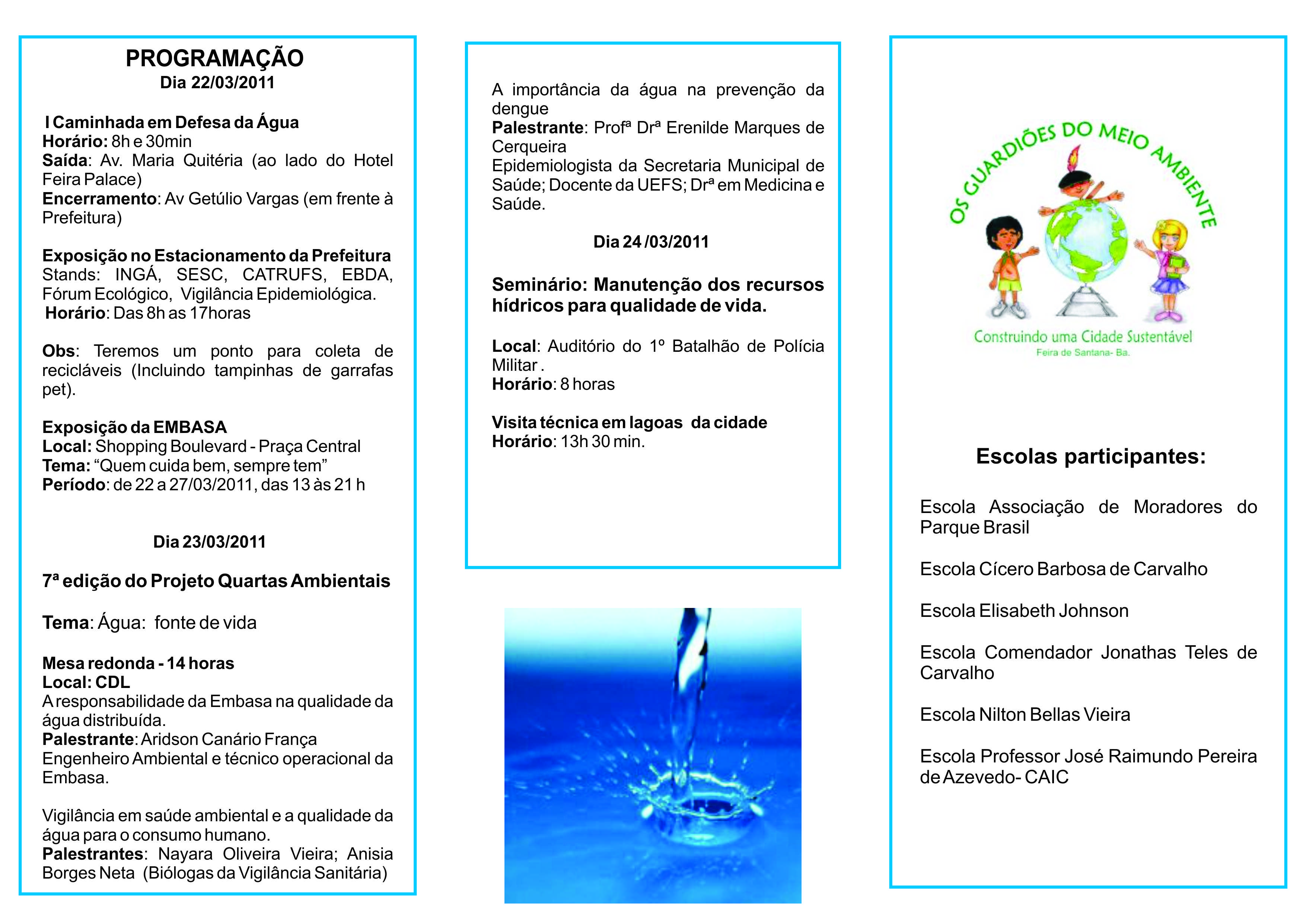 II Semana em Defesa da Água - 22 a 27 de Março